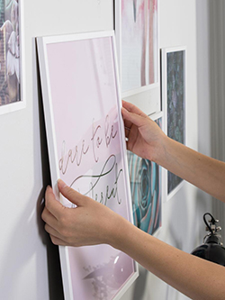 Tarkka valokuvakehysten valinta määrää tietysti tauluseinän hengen. Ei ole epätavallista, että kehysten väriksi valitaan vain yhtä tai kahta sävyä, jolloin taulut sopivat yhteen luonnollisella tavalla. Mutta jos haluat luoda dramaattisemman vaikutelman voit tehdä juuri päinvastoin ja yhdistellä erivärisiä, -mallisia ja -muotoisia kehyksiä upean rohkeaksi kokonaisuudeksi.