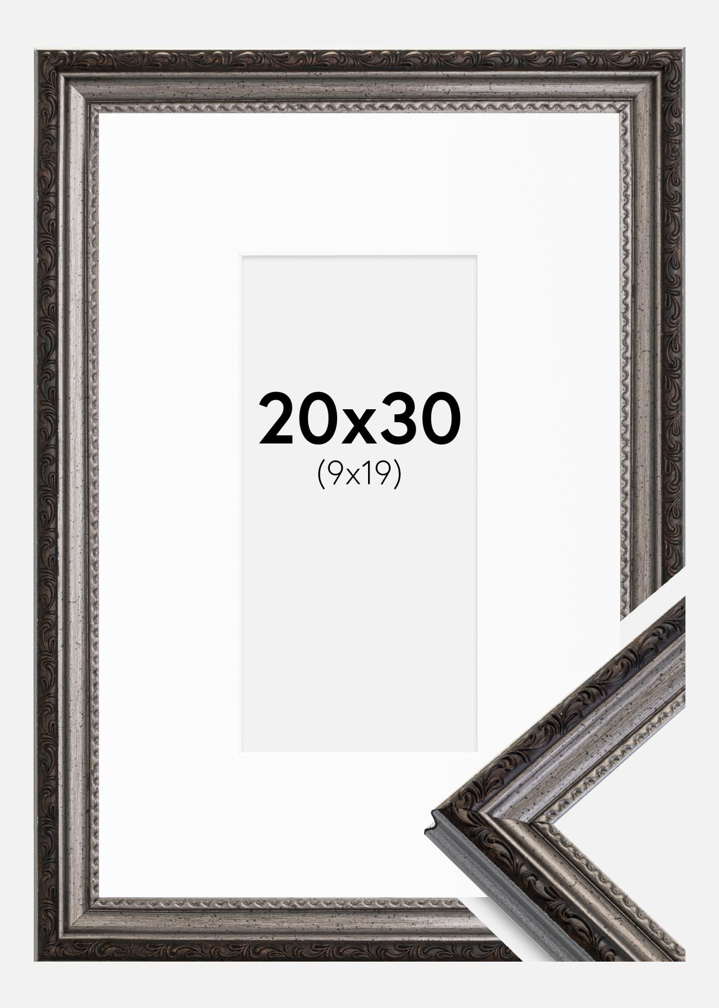 Kehys Abisko Hopea 20x30 cm - Passepartout Valkoinen 10x20 cm