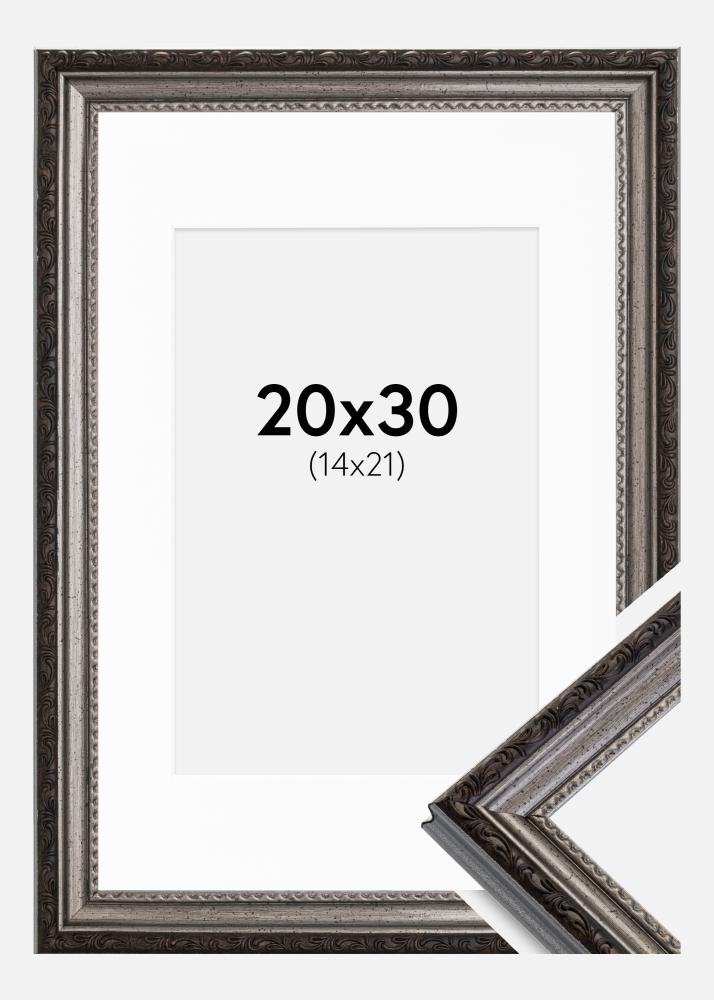 Kehys Abisko Hopea 20x30 cm - Passepartout Valkoinen 15x22 cm