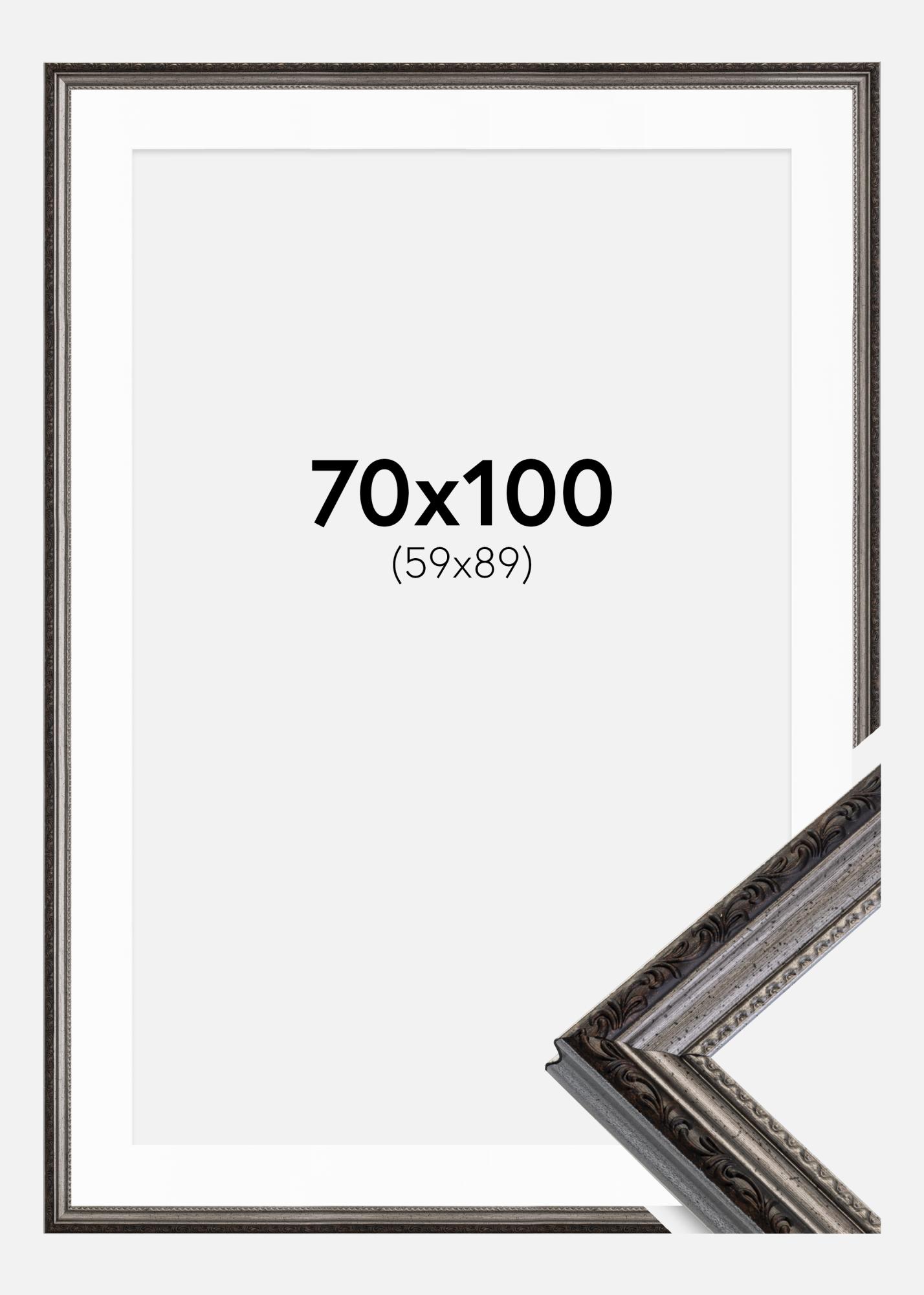 Kehys Abisko Hopea 70x100 cm - Passepartout Valkoinen 60x90 cm