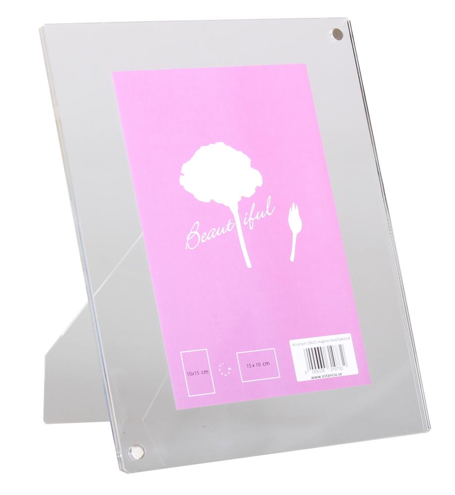 Akryylivalokuvakehys, joka koostuu kahdesta paksusta akryylilevystä, jotka ovat yhdessä magneetin avulla. Kehyksellä on pinta-alaa 15x20 cm. Alan voi käyttää vapaavalintaisesti mutta korkeintaan kuvakokoon 15x20 cm. Koko mallikuvassa on 10x15 cm.