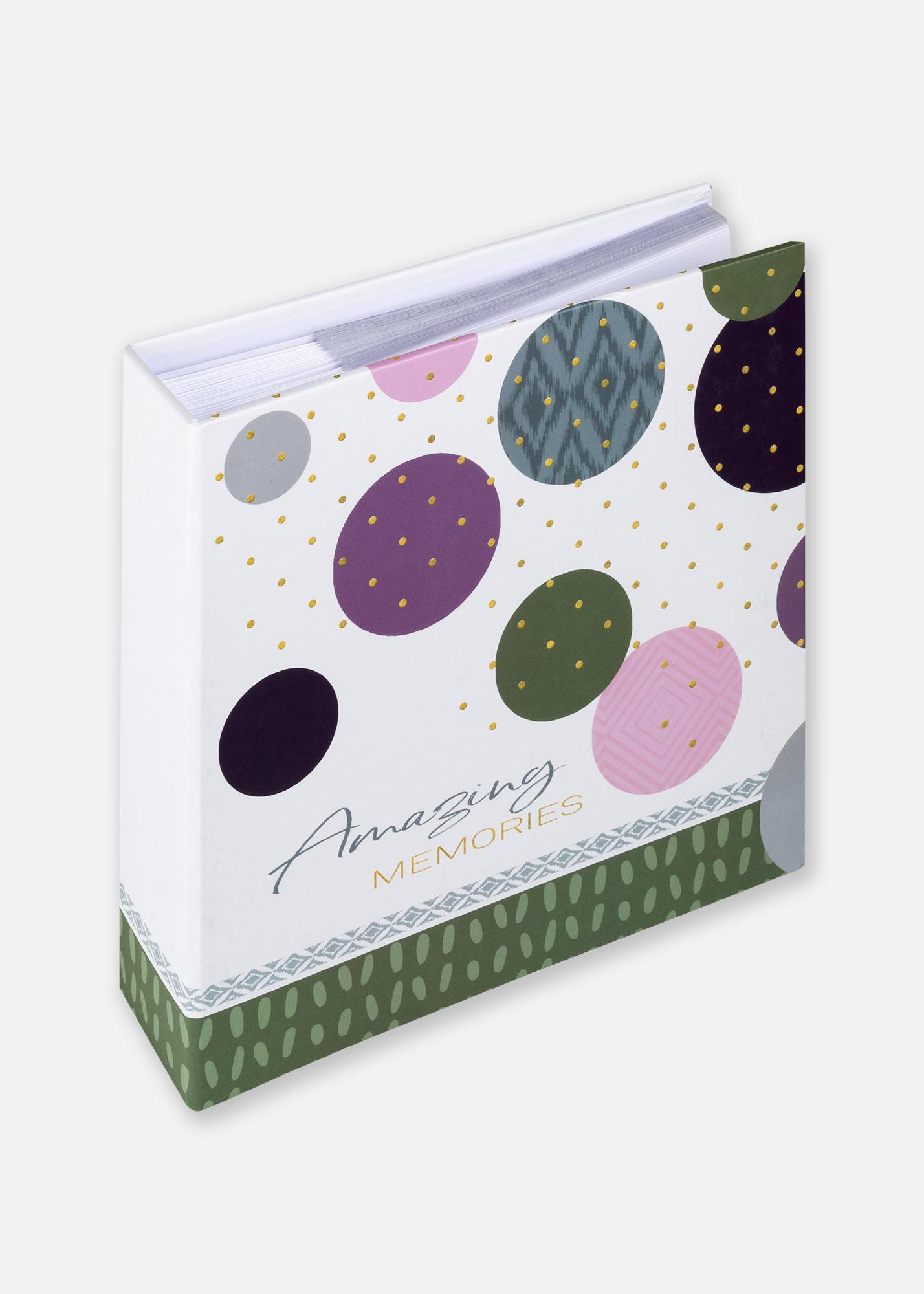 Iloiset muistot ansaitsevat iloisen pakkauksen! Tämä valokuva-albumi on hyvin koristeellinen ja ihanasti muotoiltu, ja sopii kaikille rakkaimmillesi valokuvamuistoillesi. Kannen etusivulla on värikäs kuvio jossa muun muassa on eri kokoisia ja värisiä ympyröitä, pieniä ihania kultapilkkuja - sekä otsikko ”Amazing memories”.