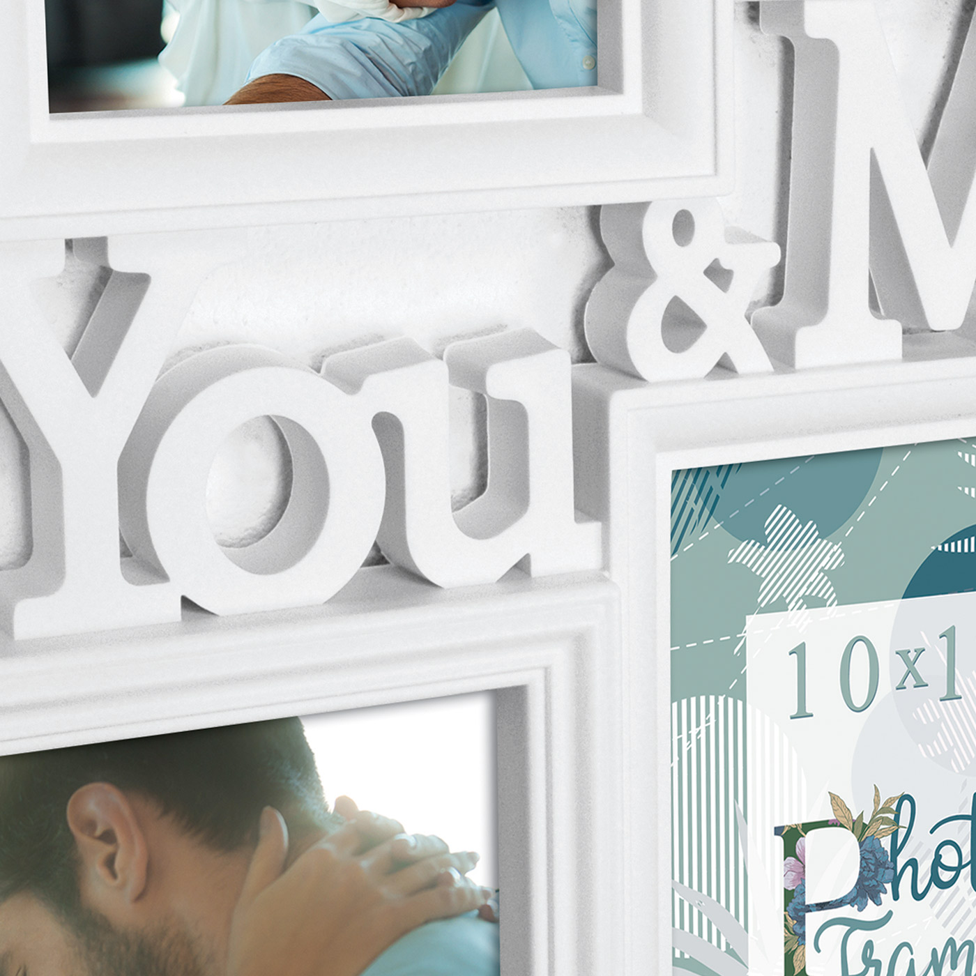 Tämä on hieno kollaasikehys, jossa on paikat 6 kuvalle sekä pysty- että vaakasuunnassa. Keskellä ovat sanat "You & Me", ehkä haluat kehystää tähän kehykseen hienon valokuvan parhaan ystäväsi kanssa tai ehkä valokuvan puolisosi kanssa! Tästä riippumatta tämä kehys on täydellinen järjestämään ryhmän hienoja valokuvamuistoja lähimmäisistäsi. Kollaasikehys sopii kuville koossa 10x15 cm. Kollaasikehys on valmistettu komposiitista ja on sävyltään tyylikkään valkoinen. Sisältää seinäkiinnikkeen. Ulkomitat ovat 47,5x38 cm.