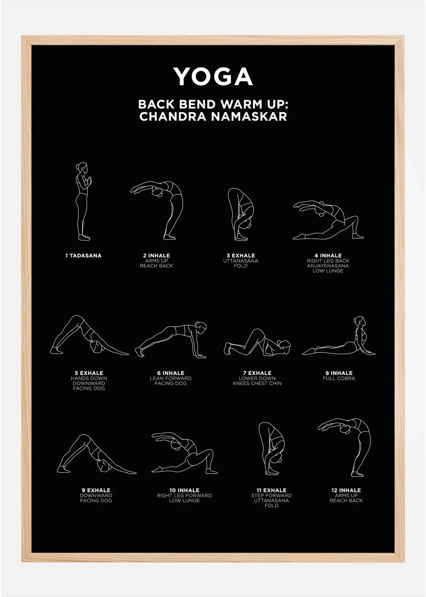Trendikäs juliste, joka sopii hyvin yhteen muiden motiivien kanssa luodakseen trendikkään tauluseinän. Juliste on tyylikäs yksinkertaisella suunnittelullaan, mutta toimii myös apuna, kun haluat oppia yhden joogan klassisista lämmittelyharjoituksista ”Chandra Namaskar”. Juliste on saatavilla mustana tai valkoisena ja useassa eri koossa.
