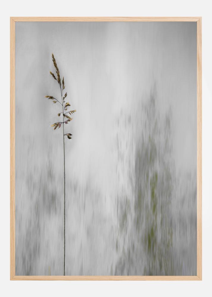 Pehmeä juliste yksittäisestä ruohonkukan varresta pehmeällä harmaalla taustalla. Ruohonkukan kullanvärisyys erottuu selkeästi ja korkeana taustan pehmeää tarkennusta vasten pitäen katseesi siinä. Ripusta tämä kotiin neutraalille seinälle, niin saat maagisen ripauksen tästä yksinkertaisesta, mutta mieleenpainuvasta teoksesta.