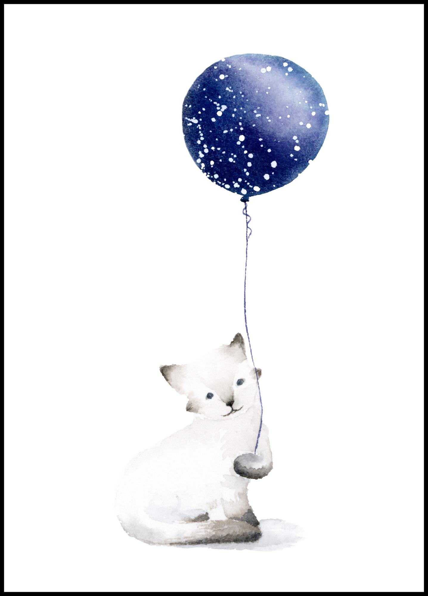 Cat With Balloon Juliste (21x29.7 cm (A4))