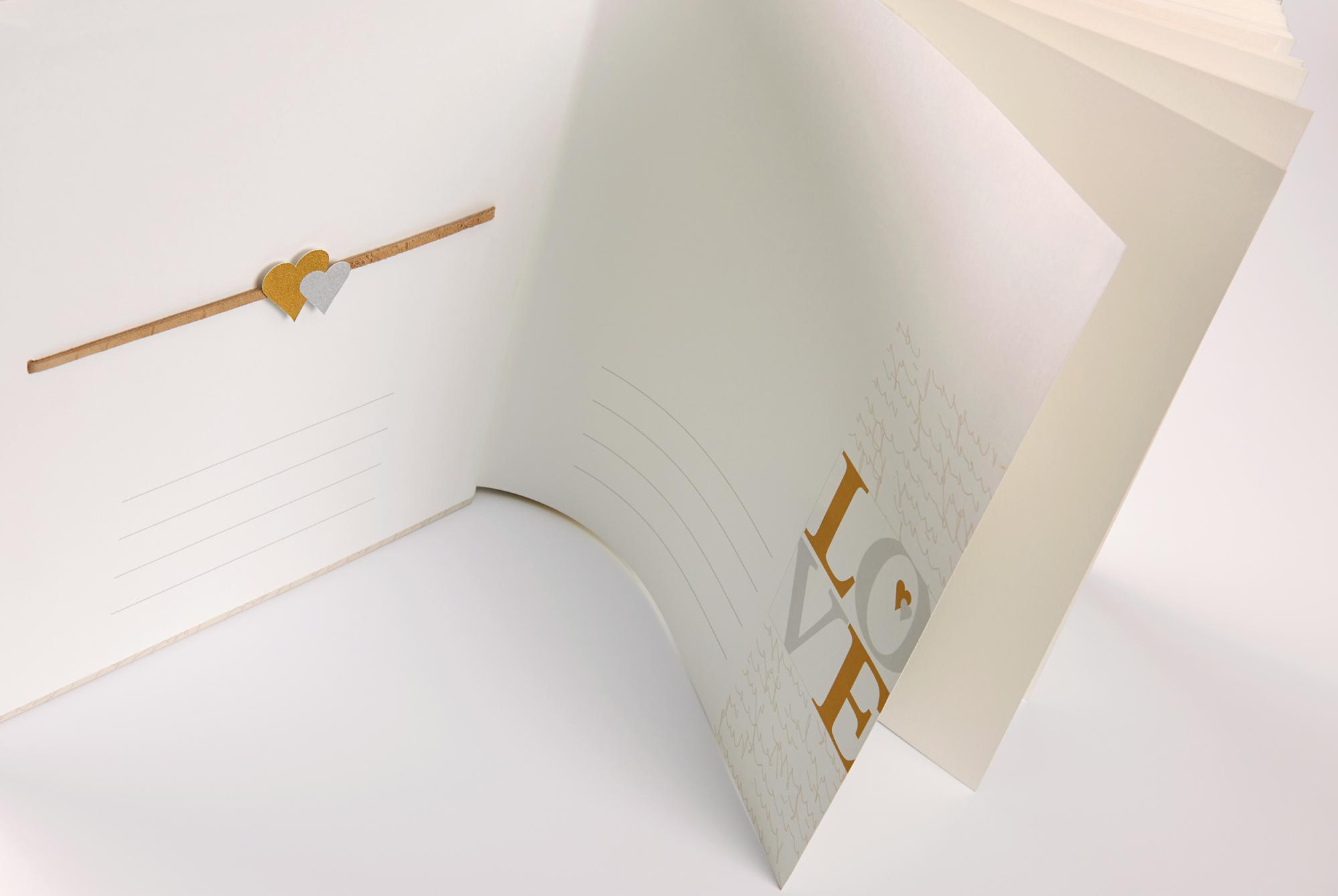 Valokuva-albumi hääkuvillesi. Voit vaihtaa kuvan etusivulla. Kirjan avatessasi näet kaksi kauniisti koristeltua sivua, joilla on paikka omille merkinnöille.Pitkän käyttöiän takaamiseksi albumi on kirjasidottu, ja sen sivut sisältävät pergamiinilehteä, jotta sivut eivät tarttuisi toisiinsa. Albumi on lisäksi luonnollisesti hapoton.