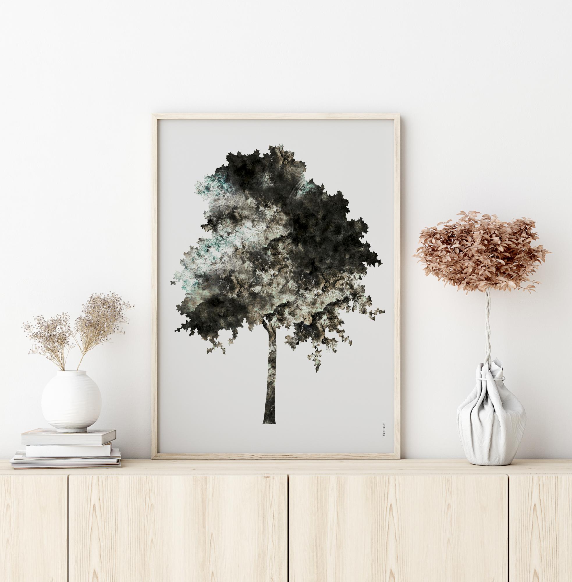 Yksi graafisen taiteen juliste puun muodossa, jonka on luonut graafinen taiteilija Isabell Larsson, VISSLA Visuell Design. Ihastuttavan minimalistinen taulu harmonisissa väreissä, joka sopii yhtä hyvin eteiseen tai keittiöön kuin olohuoneeseen, makuuhuoneeseen tai kirjastoon.