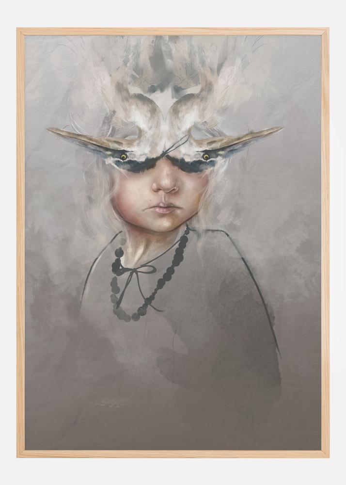 Aavemainen juliste savun peittämästä henkilöstä. Pään päällä on hattu, joka näyttää olevan tulessa ja näyttää kahdelta ylösalaisin olevalta linnulta tai kallolta. Silmät on peitetty salaperäisesti varjostimilla, kun hahmo säilyttää viileytensä. Lisää tämä teos kotiisi, niin saat seuraavan tason tulkintoja.