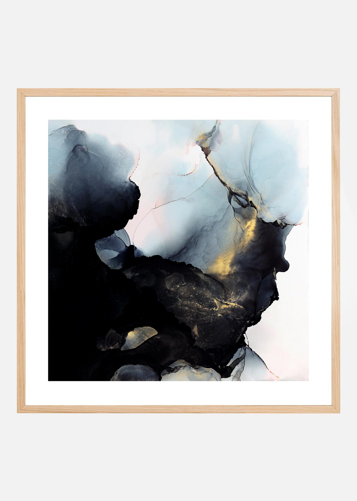 Abstrakti taide juliste akvarellissa mustan, sinisen ja kullan sävyissä kevyillä vaaleanpunaisen sävyillä, taiteilija Gabriella Robergin luoma. Kaunis juliste, joka yhdistetään edukseen muiden Gabriella Robergin valikoimamme kanssa.