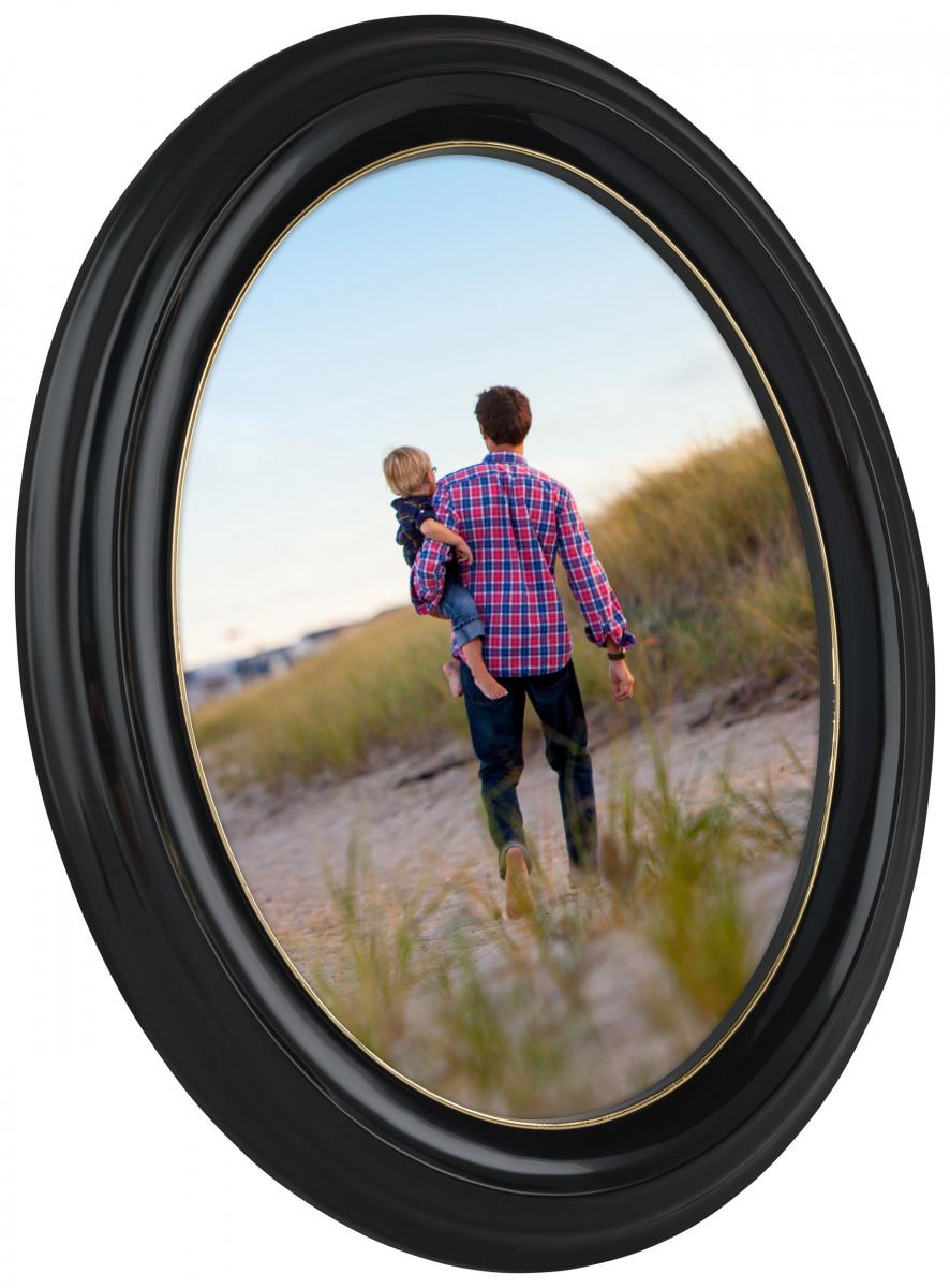 Eiri Mozart on hieno musta ovaalinmuotoinen valokuvakehys, joka on valmistettu Suomessa. Tämä on tae korkeasta laadusta. Kehyksessä on lisäksi kaunis kultareunus sisäpuolella, mikä luo mukavasti kontrastia kokomustaan kehykseen.