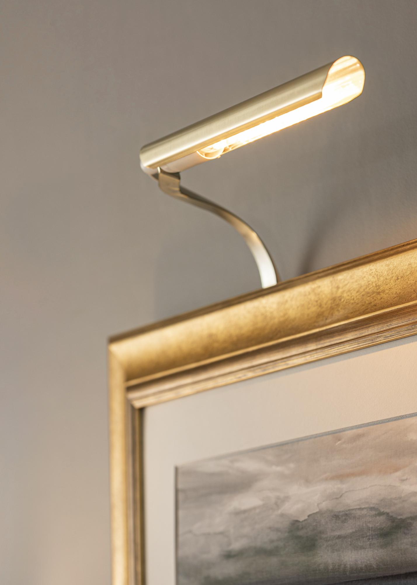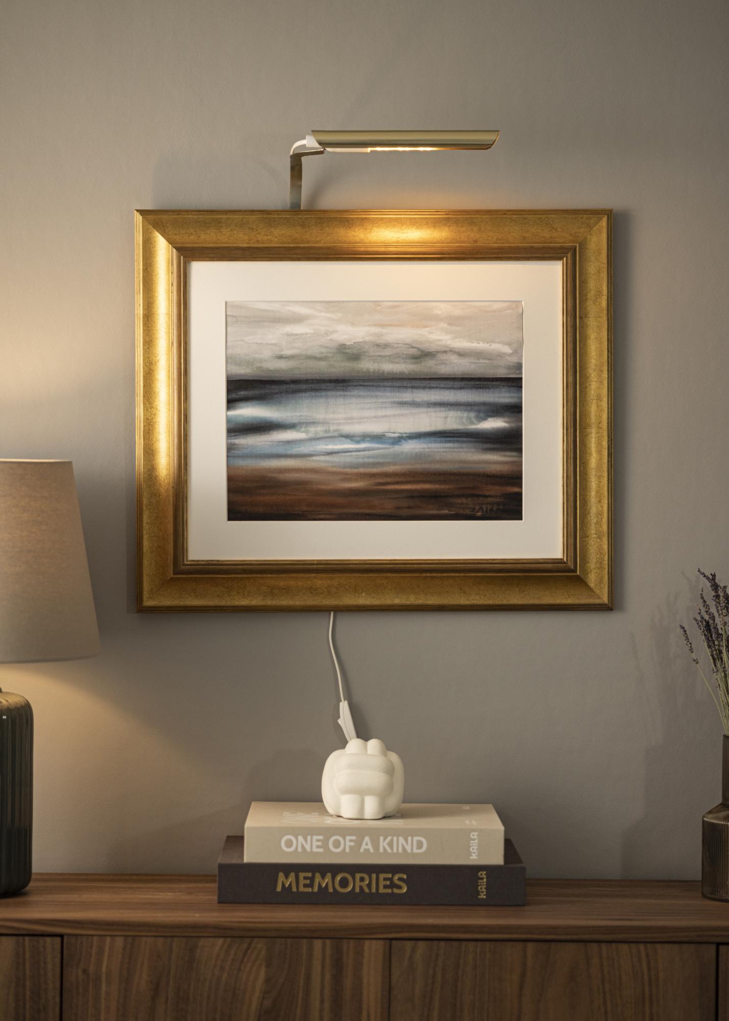Mihin tauluihin valaisin sopii? Normaalisti kiinnität taulun valaisimen kehyksen takaosaan, mutta tämä vaatii useimmiten leveäprofiilisen puukehyksen jotta voit ruuvata valaisimen kiinni. Seinäkiinnityksellämme sinun ei tarvitse huolehtia siitä, koska tauluvalaisin asennetaan suoraan seinälle taulun taakse.