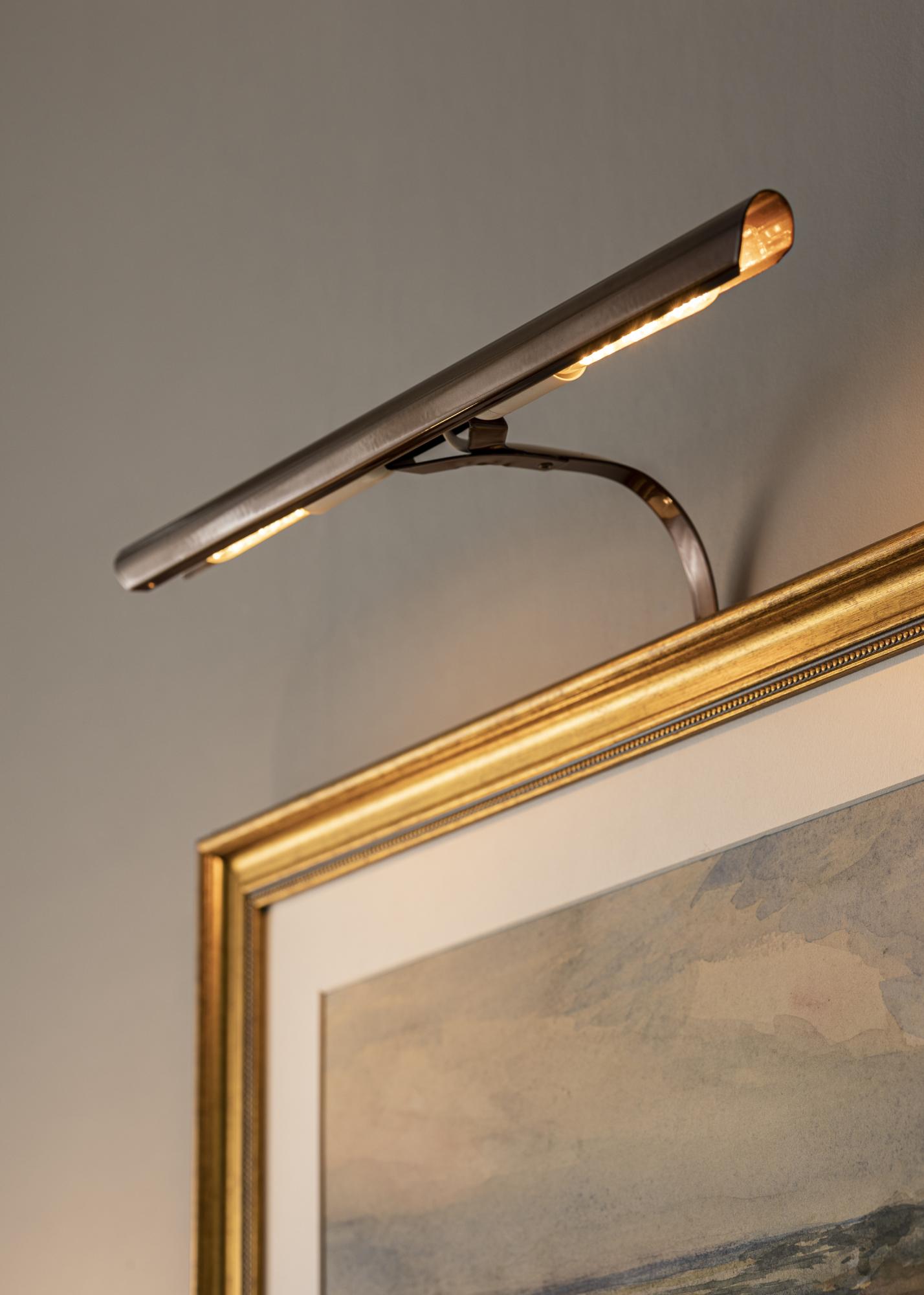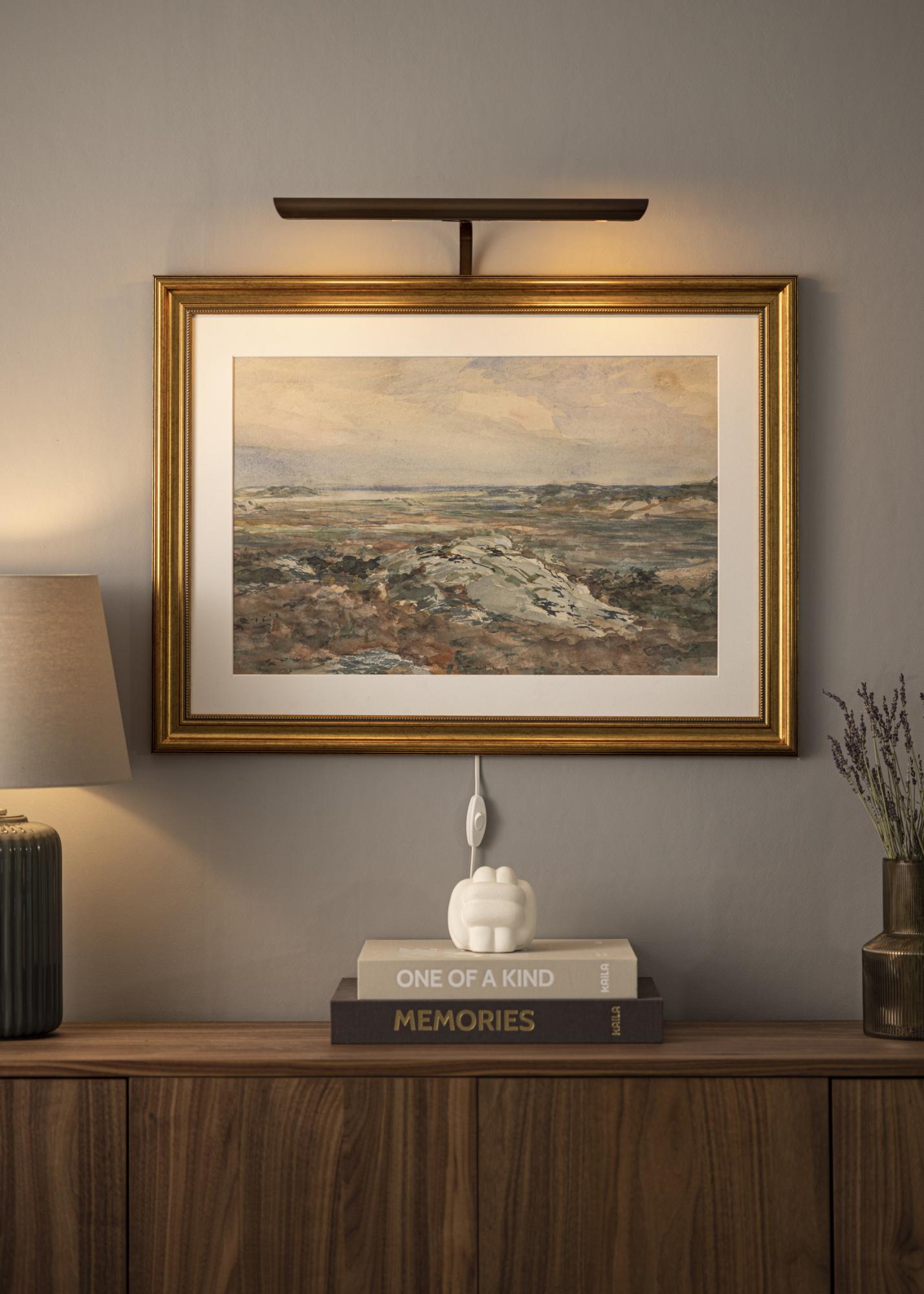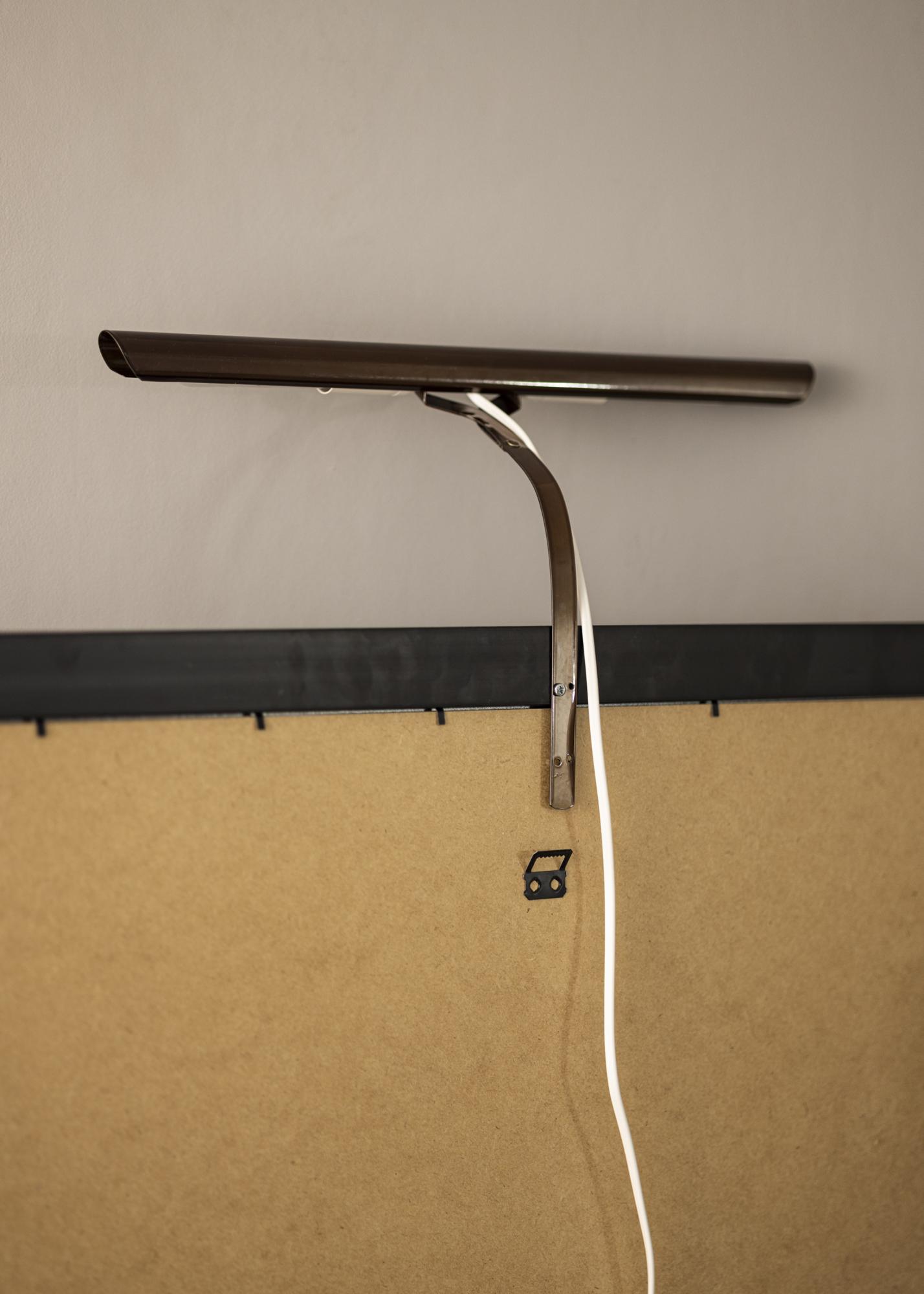 Mihin tauluihin valaisin sopii? Normaalisti kiinnität taulun valaisimen kehyksen takaosaan, mutta tämä vaatii useimmiten leveäprofiilisen puukehyksen jotta voit ruuvata valaisimen kiinni. Seinäkiinnityksellämme sinun ei tarvitse huolehtia siitä, koska tauluvalaisin asennetaan suoraan seinälle taulun taakse.