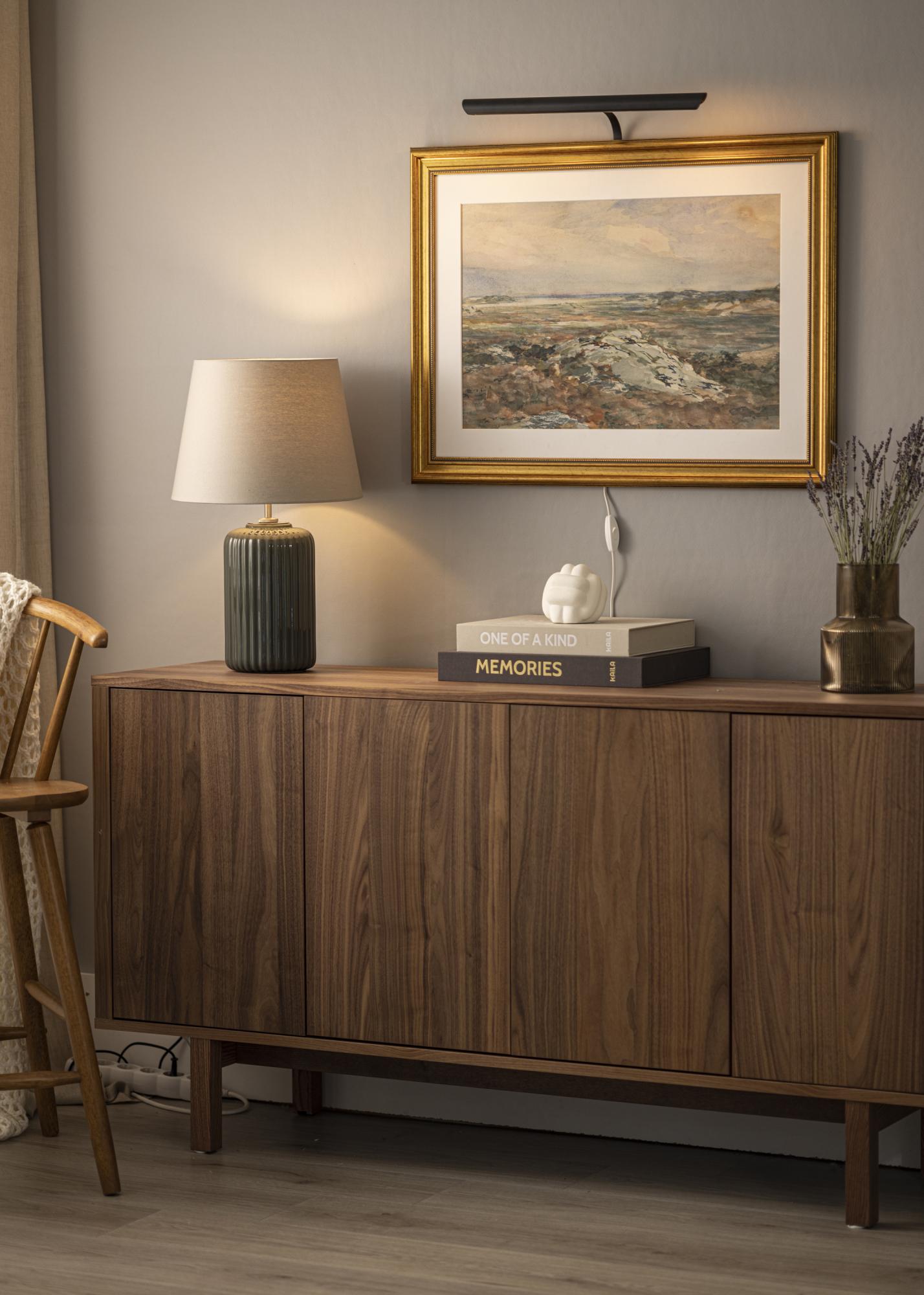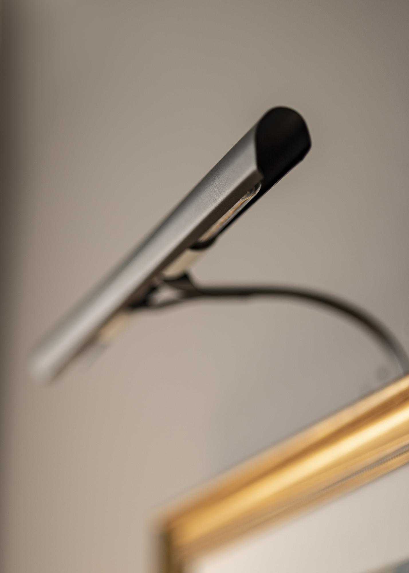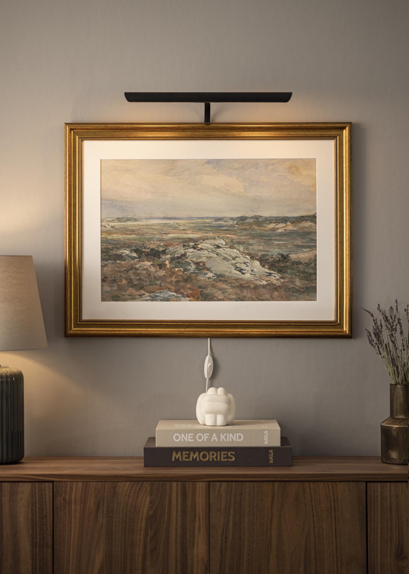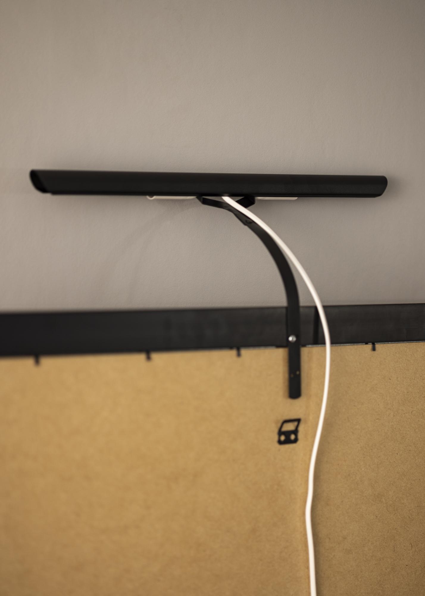 Mihin tauluihin valaisin sopii? Normaalisti kiinnität taulun valaisimen kehyksen takaosaan, mutta tämä vaatii useimmiten leveäprofiilisen puukehyksen jotta voit ruuvata valaisimen kiinni. Seinäkiinnityksellämme sinun ei tarvitse huolehtia siitä, koska tauluvalaisin asennetaan suoraan seinälle taulun taakse.