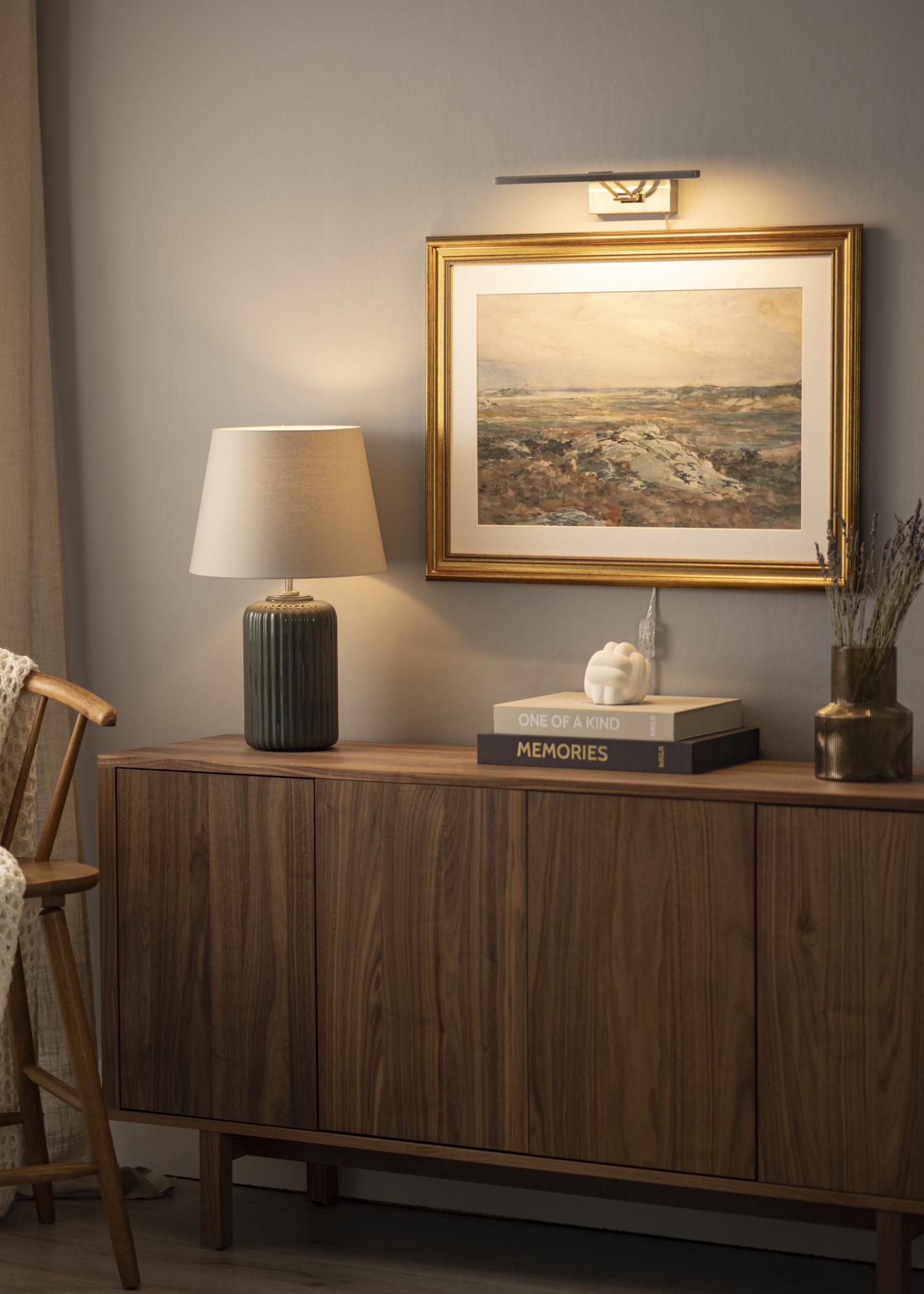 Tauluvalaistus modernia ruotsalaista muotoilua. Sopii tauluille, joiden leveys on 60-100 cm. Valaisimen korkeus on 5 cm ja pituus 37 cm, etäisyyden seinään ollessa 20 cm. Voimakkaalla 720 lumenin led-valaisulla aikaansaat miellyttävän valaistuksen myös suuremmille tauluille.