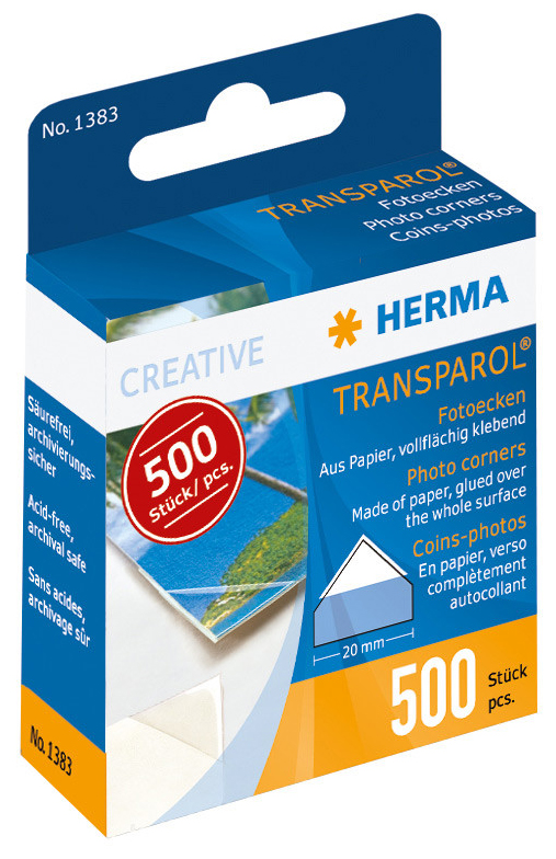 Hernan itsestäänkiinnittyvät läpinäkyvät kuvan kiinnityskulmat. Jokaisessa pakkauksessa on 500 kpl kuvan kiinnityskulmia. Käytetään mm. kuvien kiinnittämiseen valokuva-albumiin. Kiinnityskulma on leveydeltään 20 mm.