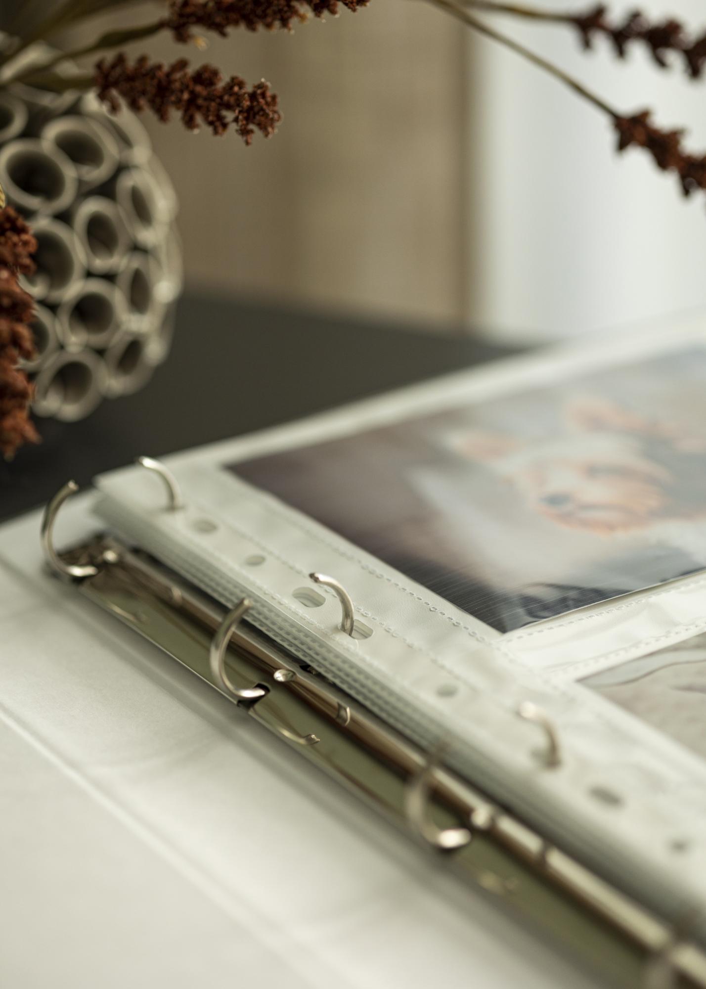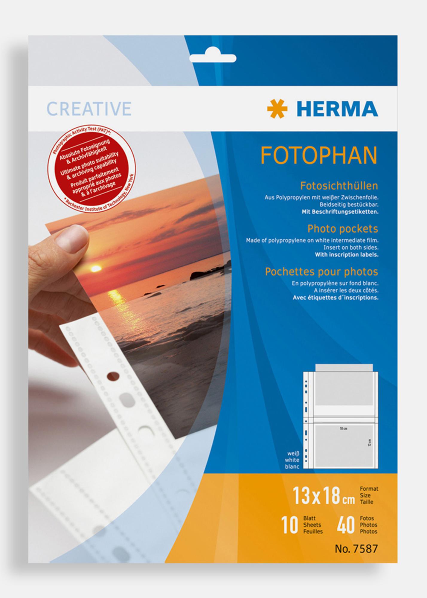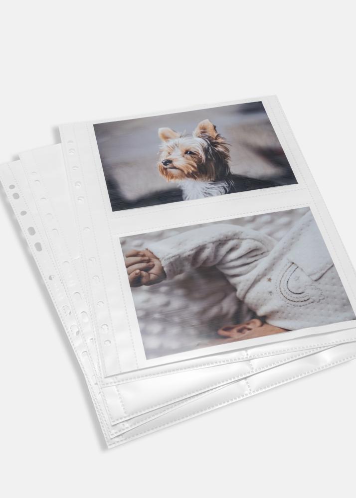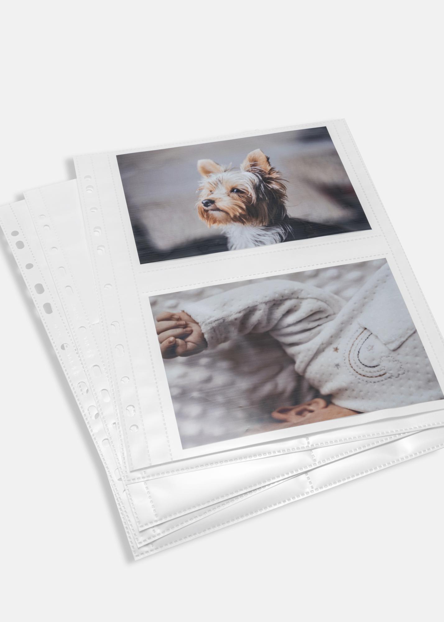 Kaksipuoliset valkoiset, 13x18 cm kokoiset, vaakasuuntaiset valokuvataskut. Herman valokuvataskut ovat aina happo- ja PVC-vapaat eivätkä taatusti vahingoita kuviasi. Kuvataskuissa on tavallisiin rengaskansioihin soveltuva standardin mukainen rei’itys.