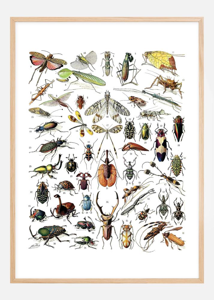 Tuo luonto kotiisi asettamalla tämä kaunis koulujuliste! Aihe on peräisin vanhasta kirjasta entomologiasta ja se esittää suuren ryhmän värikkäitä hyönteisiä. Koska juliste on saatavilla useassa eri koossa, löydät helposti sopivan juuri sinun tarkoitukseesi. Täydennä mielellään tyylikkäällä kehyksellä laajasta valikoimastamme!