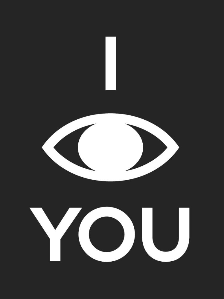 Kuva klassisella graafisella aiheella, joka on saanut inspiraationsa näköaistista. Julisteessa on mustaa taustaa vasten minimalistinen valkoinen painatus, joka sopii hyvin ainoana tauluna seinälle tai vaihtoehtoisesti yhdessä muiden kanssa tauluseinäksi. Juliste sopii hyvin ulko-oven viereen kutsumattomien vieraiden pelotteluun. Vaihtoehtoinen paikka on teinien seinällä muistuttamassa, että vanhempien katse yltää kaikkialle.