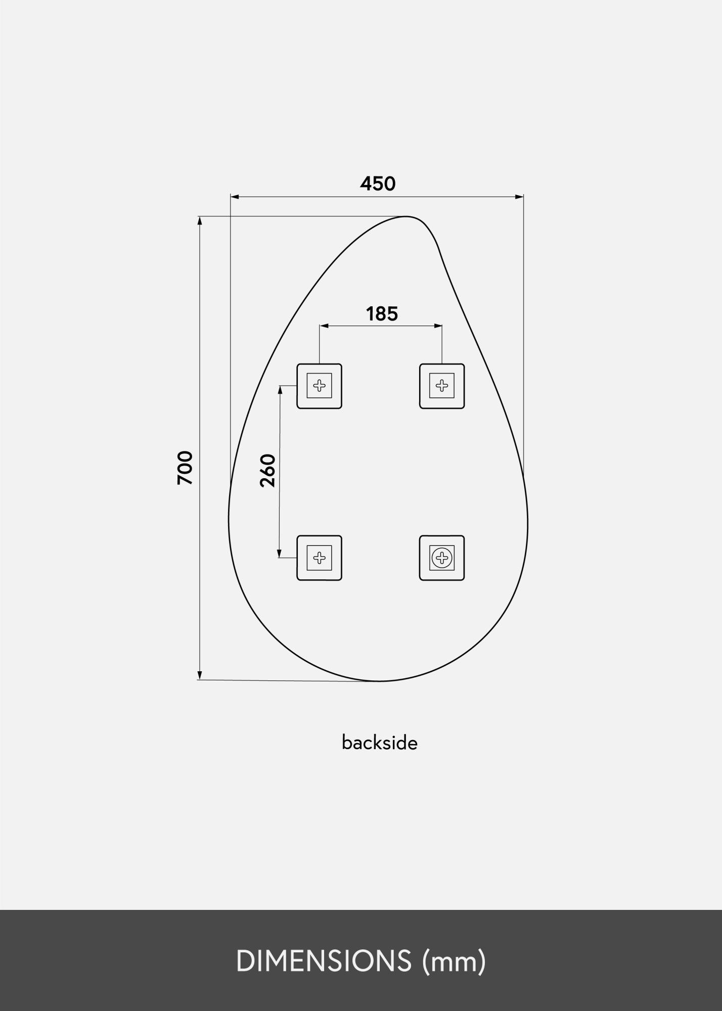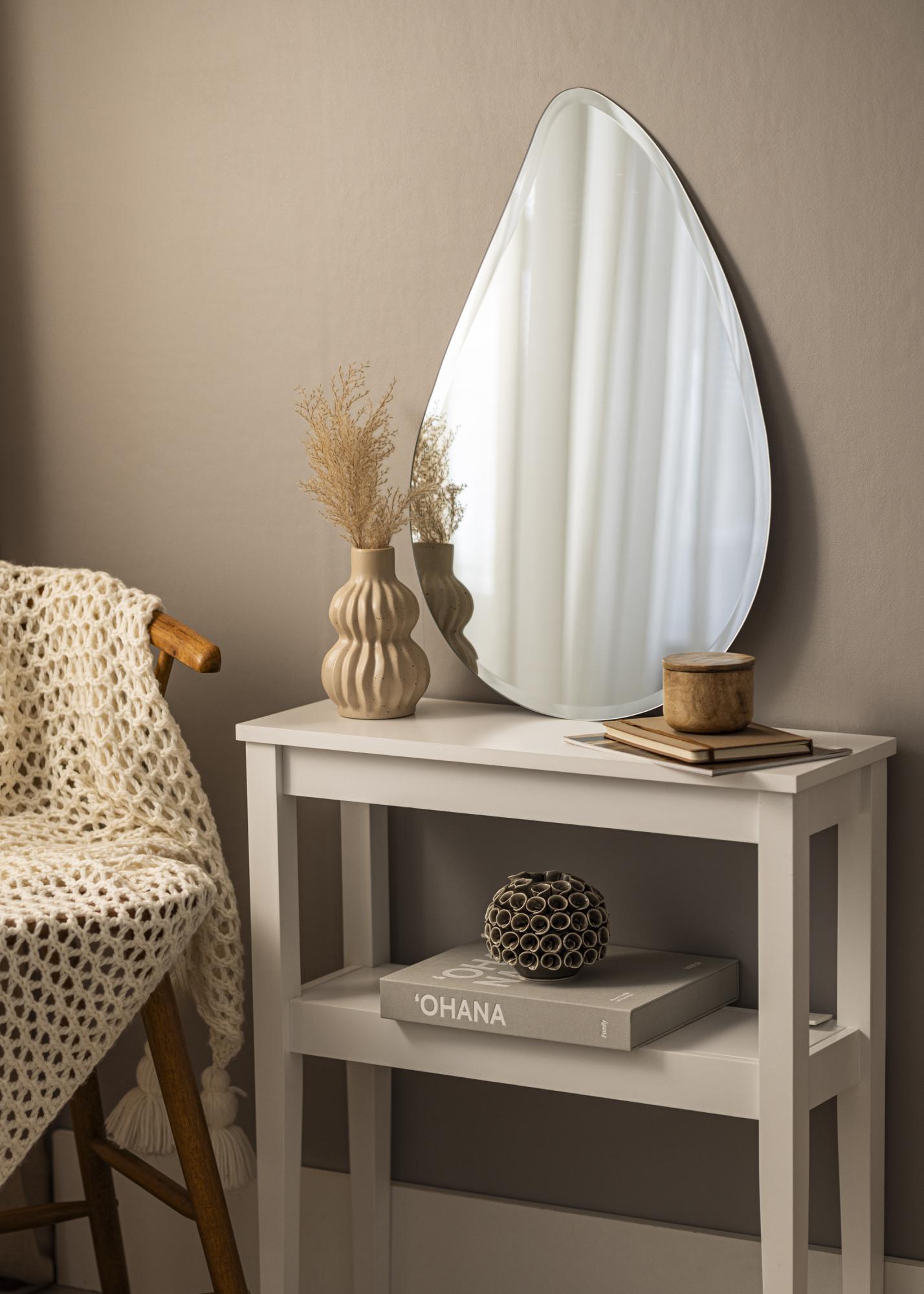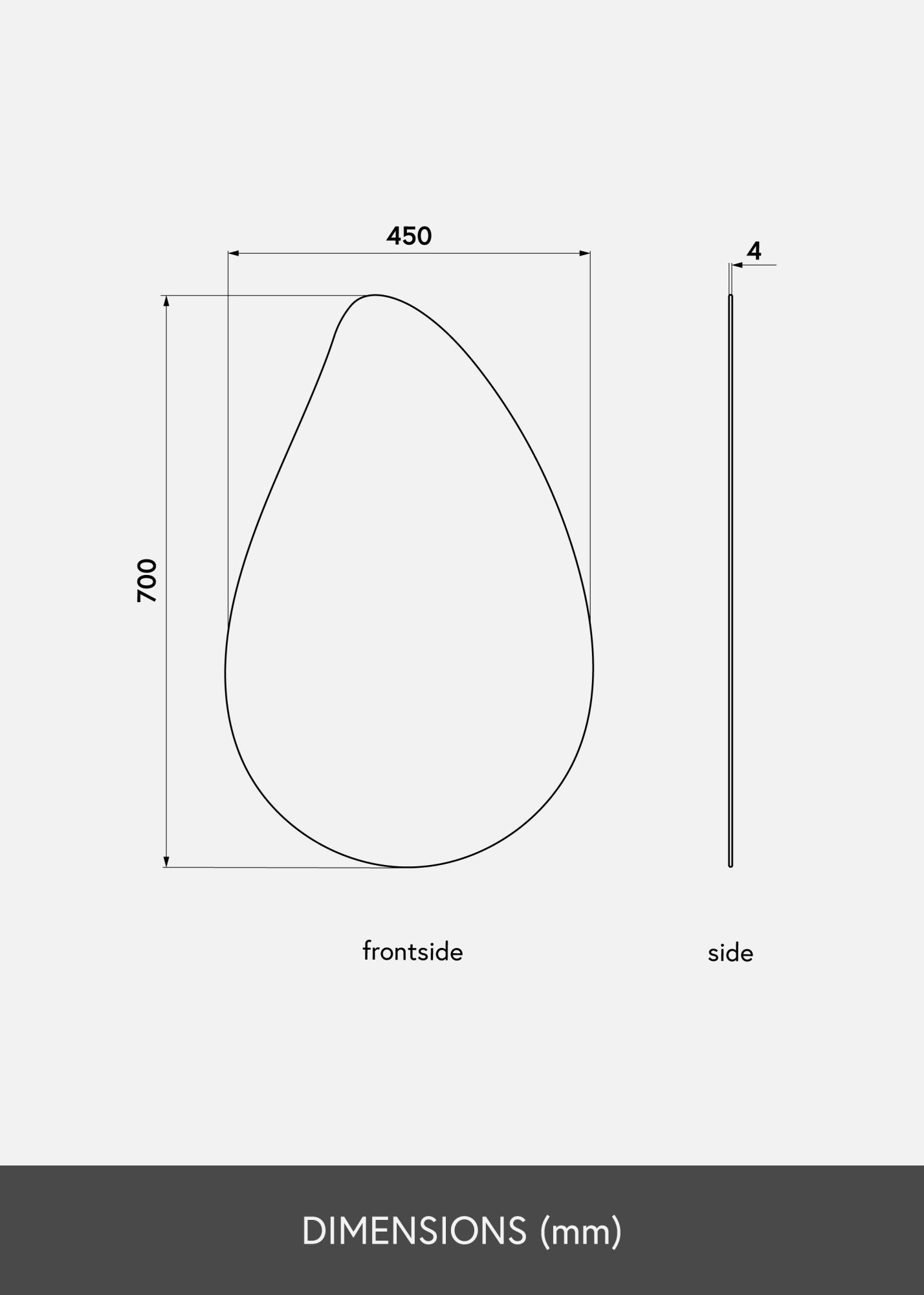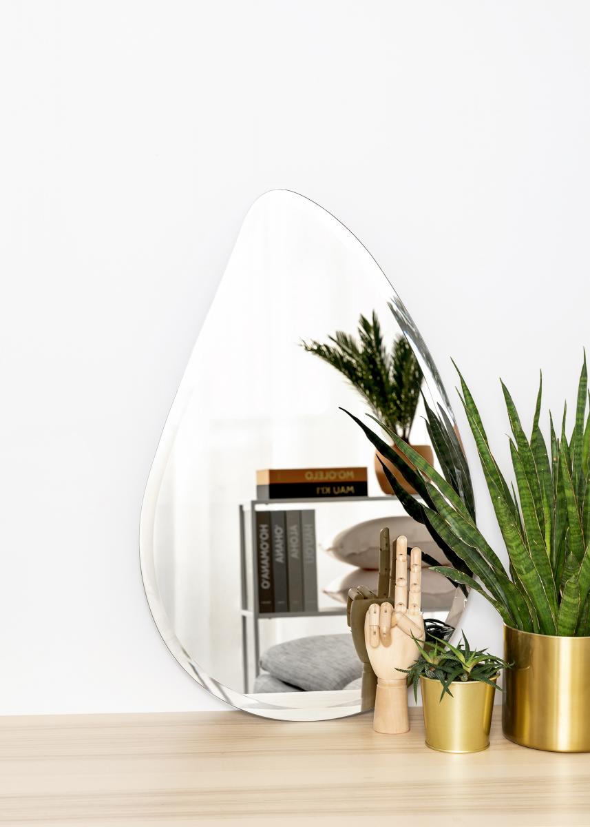 Sijoita tämä elegantti peili paikkaan, jossa siitä on sekä koristeellista että käytännön hyötyä, kuten esimerkiksi eteiseen, makuuhuoneeseen tai olohuoneeseen. Tätä pisaran muotoista peiliä on saatavilla useassa eri koossa, ja tämä versio on kooltaan 45x70 cm.