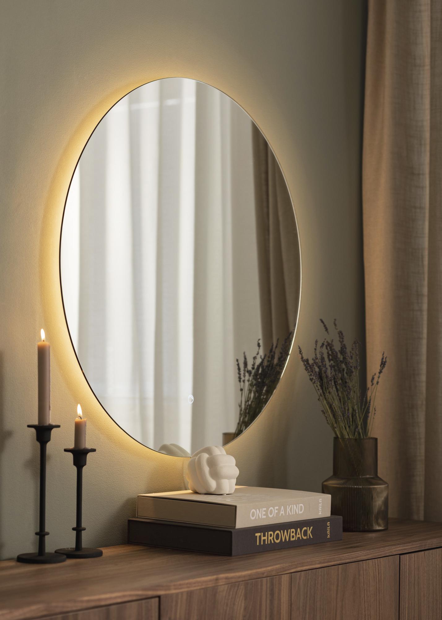 Tämä pyöreä kylpyhuoneen peili klassiseen malliin kuuluu ruotsalaiseen KAILA-mallistoon. Peilin takaosassa on sisäänrakennettu himmennettävä valaistus, jonka lämpimän valkoinen sävy vastaa 3000 Kelvinastetta. Valaistuksen voimakkuutta voi säätää painamalla säätönappia muutaman sekunnin ajan ja viimeksi säädetty voimakkuus jää peilin muistiin. LED-valaistus on energiaa säästävää ja heijastaa ympärilleen tasaisen ja luonnollisen tuntuisen valon.