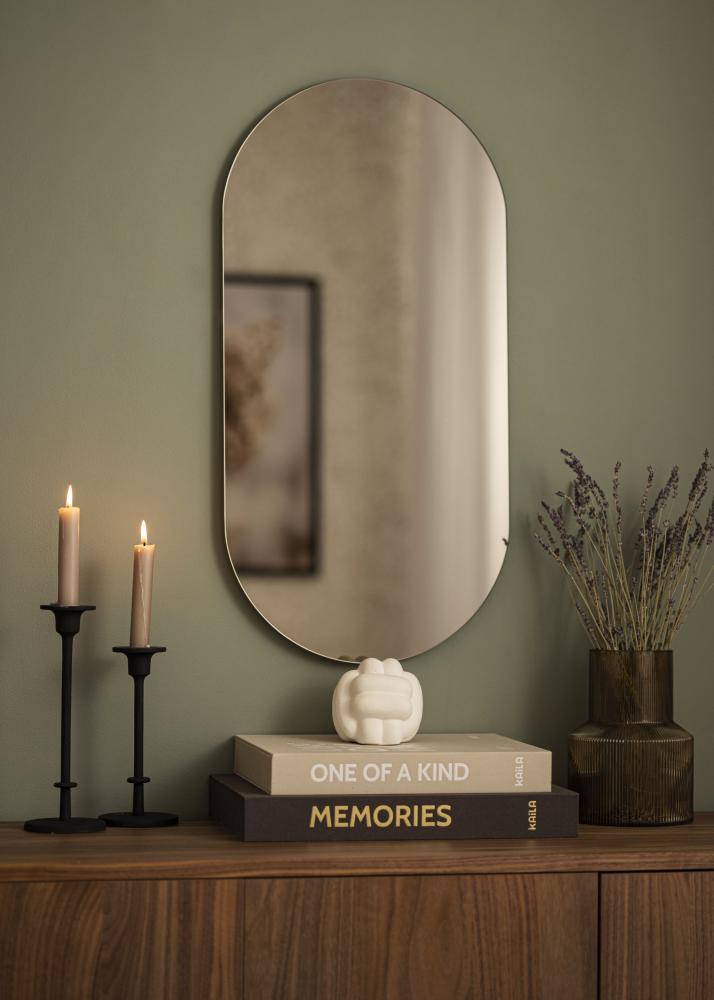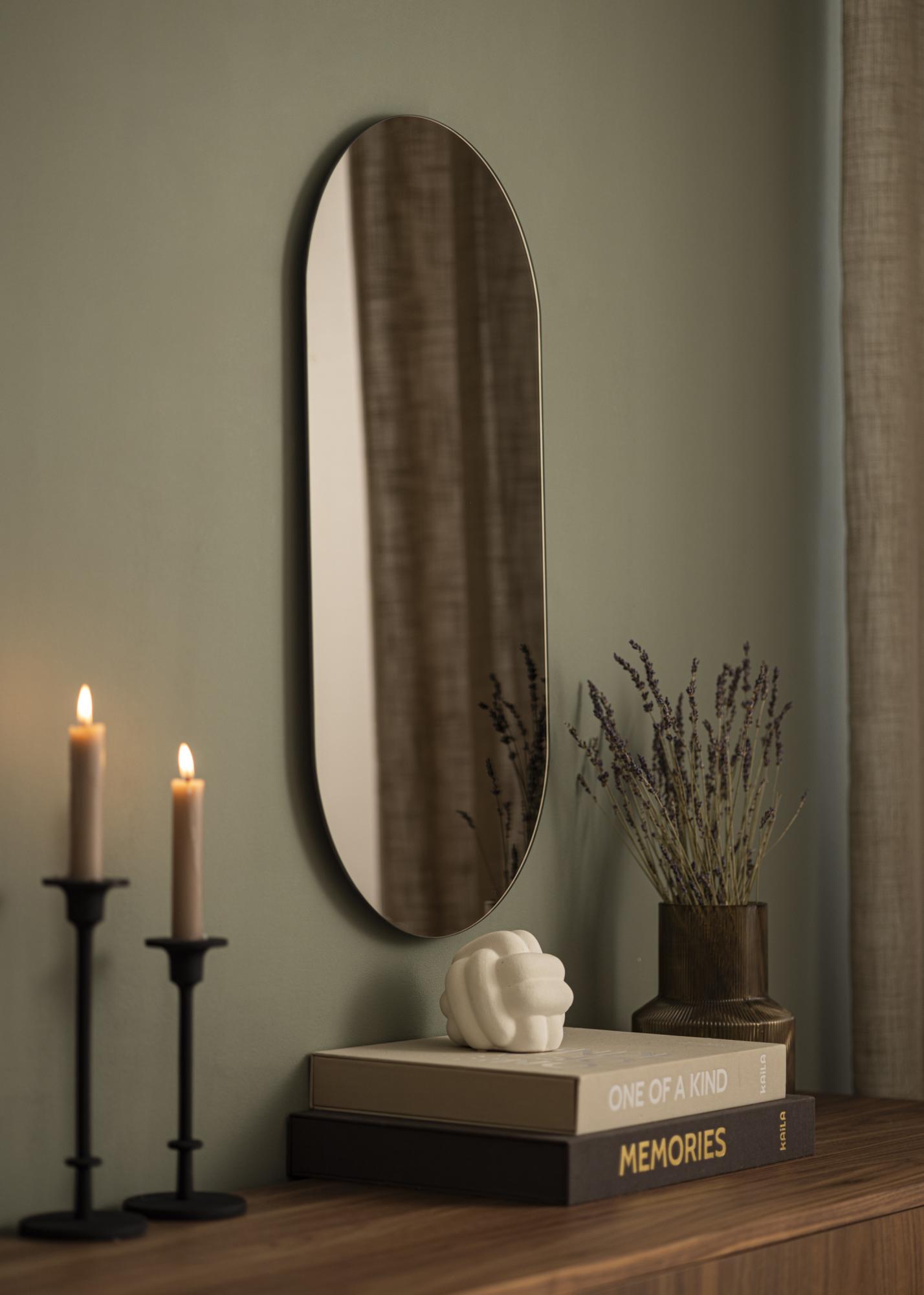 Soikea peili tuo pehmeän ja tyylikkään ilmeen kotiisi. Juuri tällä soikealla peilillä on myös tumman pronssin väriseksi sävytetty peililasi.Tämä tehokas ja trendikäs yksityiskohta on yhdistetty siroon muotoiluun, koska peili on hyvin ohut ja sillä ei ole kehyksiä. Peili on silmäänpistävä, moderni ja tyylikäs sisustusyksityiskohta, joka sopii mihin huoneeseen tahansa, jonne haluat lisätä käytännöllisyyttä ja trendikästä ruotsalaista muotoilua!