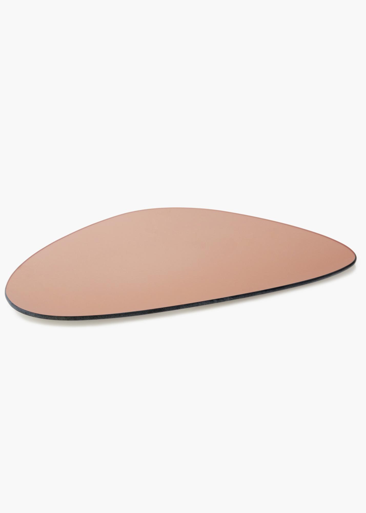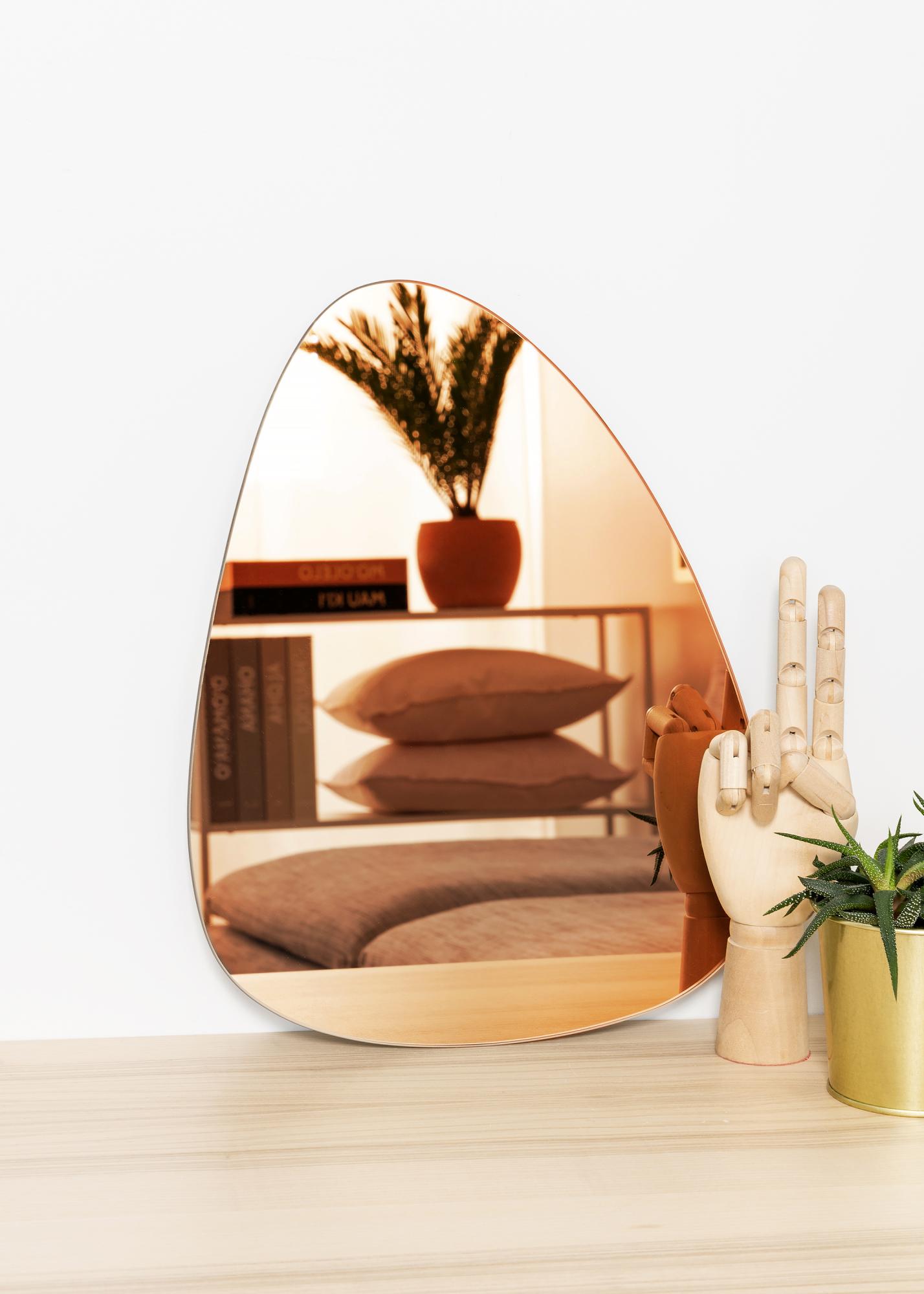 Epäsymmetrinen peili loihtii kotiisi trendikkään vaikutelman! Tämä koristeellinen seinäpeili on lisäksi myös huomattavan ohut, mikä tuo peilin moderniin ja erikoiseen muotoiluun ripauksen eleganssia. Peililasi on sävytetty vaikuttavalla ja lämpimällä ruusukullan sävyllä, mikä vahvistaa edelleen peilin trendikästä ilmettä.