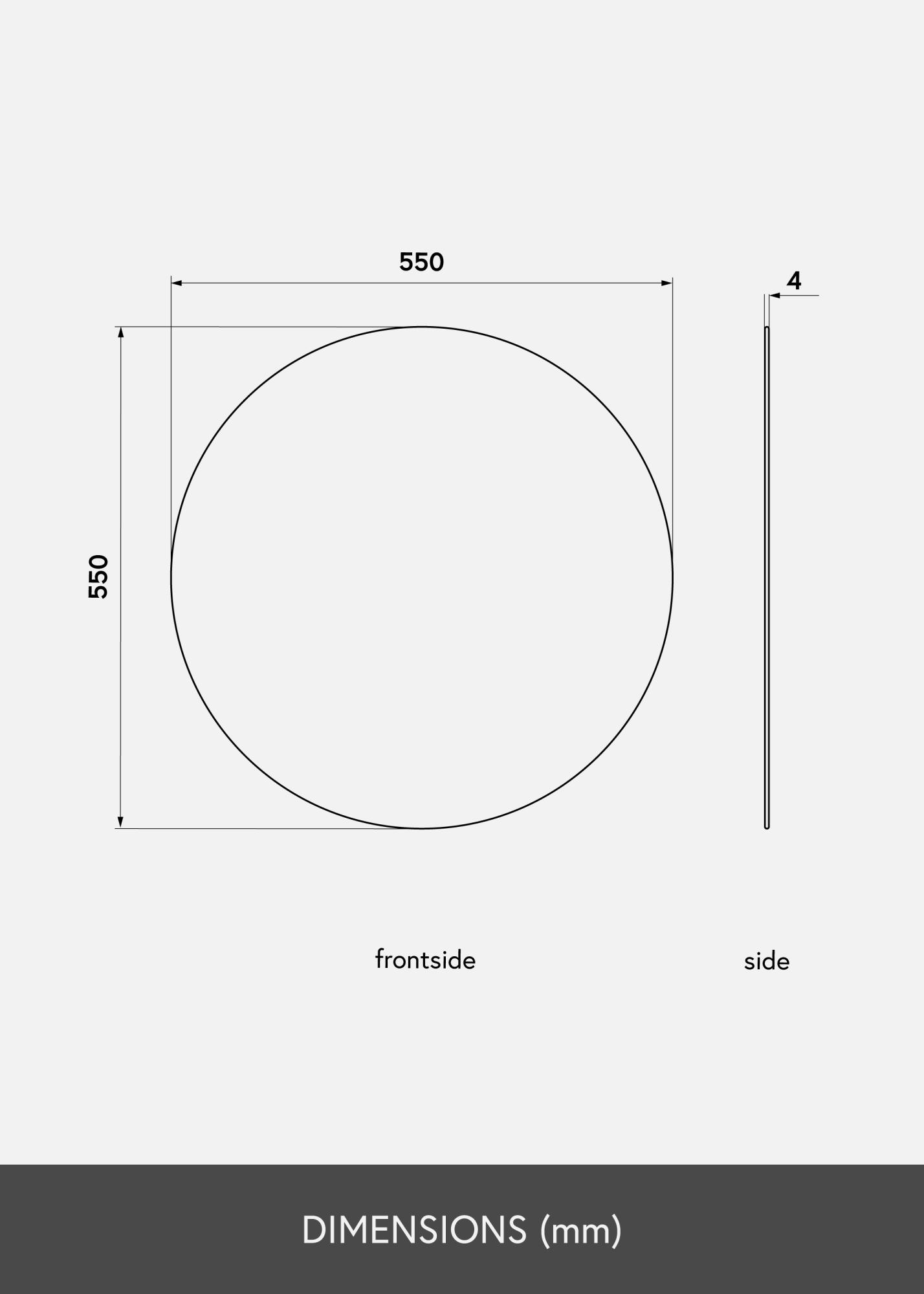 Pyöreä peili koossa 55 cm Ø joka kuuluu pyöreiden peilien sarjaan KAILA:lta. Löytyy jopa 13 eri koossa, joten löydät varmasti sopivan koon huoneeseesi. Peili on erittäin ohut ja tyylikäs, ja sopii kaikenlaisiin huoneisiin ja sisustystyyleihin.