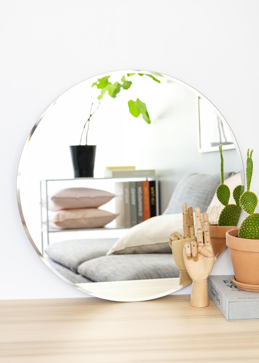 KAILA Pyöreä Peili Deluxe on elegantti pyöreä peili kauniilla fasettihiotulla reunalla, joka tuo peiliin eksklusiivisen profiilin. Peilin design on samaan aikaan sekä moderni että ajaton, minkä ansiosta se sopii useimpiin koteihin ja sisustustyyleihin.