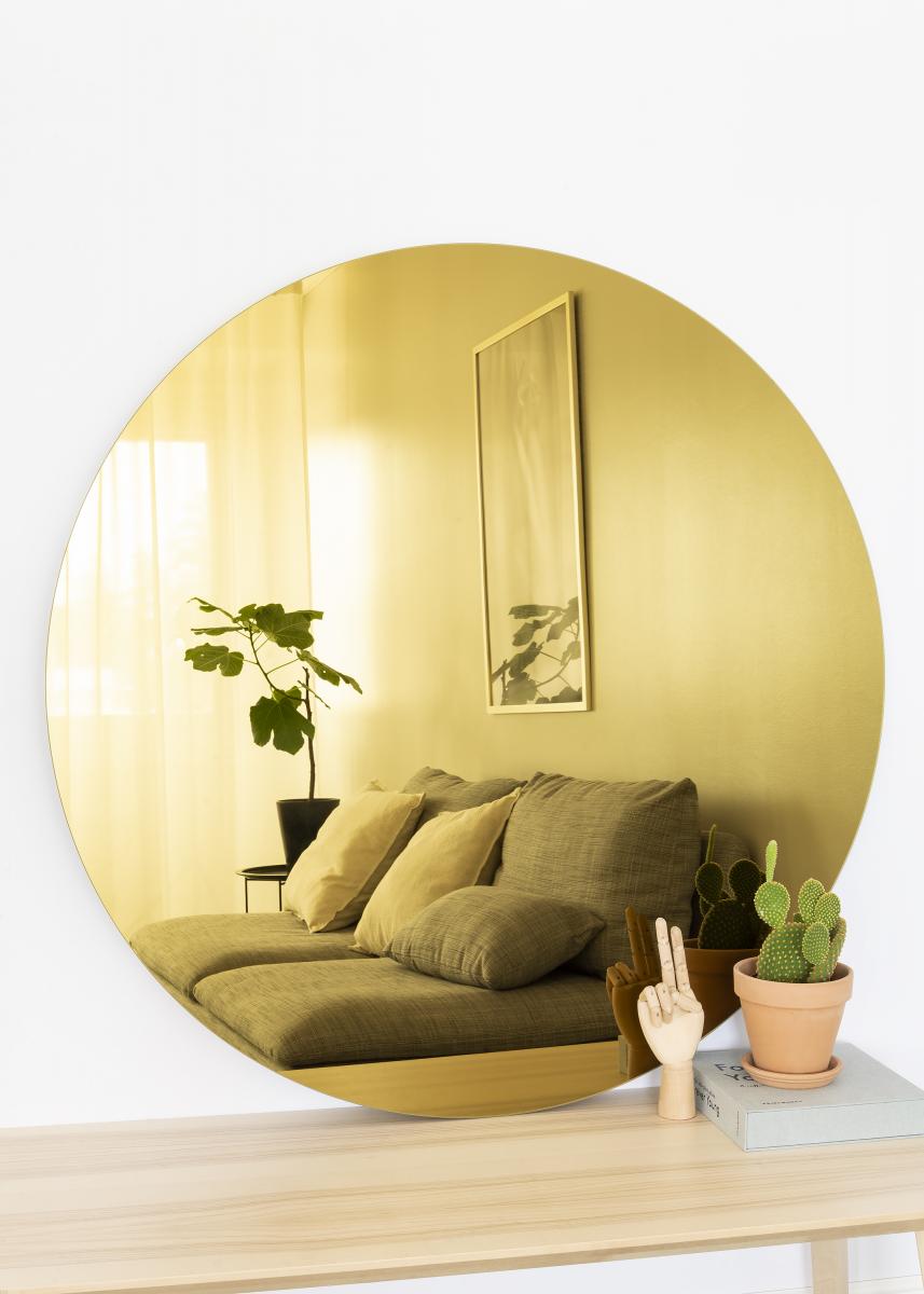 KAILA Pyöreä Peili Gold on tyylikästä muotoilua parhaimmmillaan! Pyöreä peili on ohut ja ilman kehystä ja tämä hillitty muoto yhdessä kullansävyisen peililasin kanssa, antaa tälle peilille ylellisen vaikutelman. Tällainen pyöreä peili luo pehmeyttä ja kotoisan tunnelman kotiisi, samalla kun tämän moderni twisti: kullansävyinen lasi, näyttää tyylin ja yksityiskohtien osaamisen.