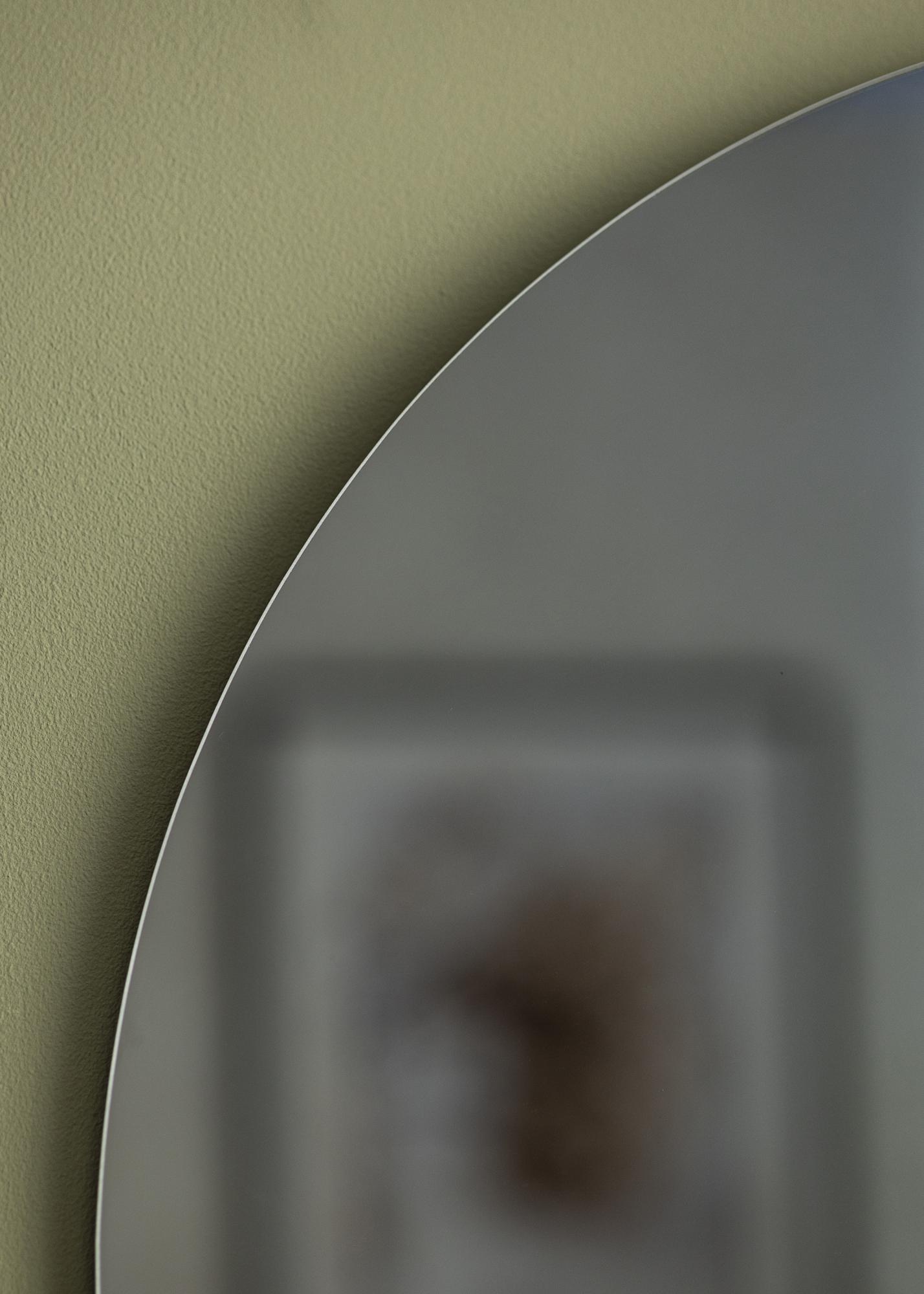KAILA Pyöreä Peili Smoked Grey on trendikäs pyöreä peili tyylikkäällä, harmaaksi sävytetyllä peililasilla. Peili on lisäksi huomattavan ohut eikä siinä ole lainkaan kehystä, mikä tuo peiliin elegantin ja siron ilmeen. Tämä pelkistetty design yhdessä sävytetyn peililasin kanssa aikaansaa modernin ja huomiota herättävän peilin, jonka profiili on elegantti ja hienostunut.