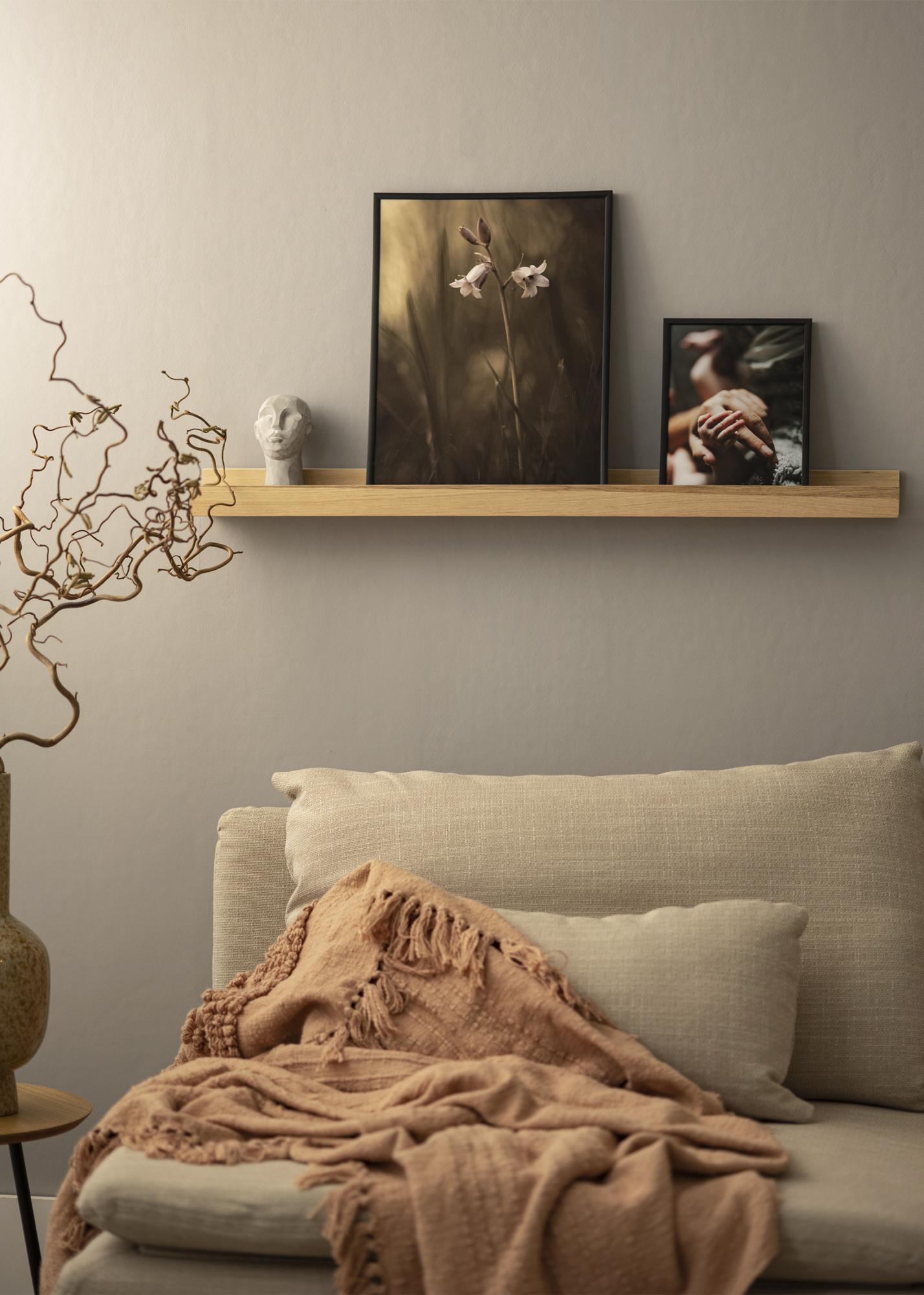 Huomioi, että tauluhylly on valmistettu massiivitammesta ja värisävy tuotteiden välillä voi vaihdella. Tauluhylly on käsitelty läpinäkyvällä suojaöljyllä.