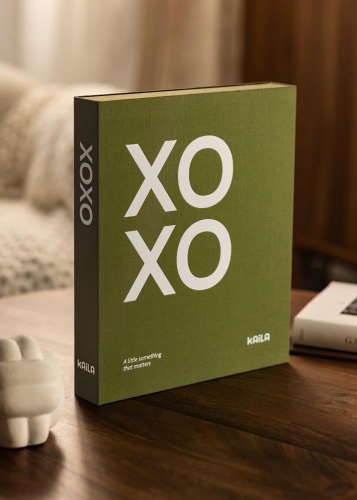 Tässä kauniissa valokuva-albumissa on ylellisen kahvipöytäkirjan tuntu ja on siksi saanut kutsumanimekseen Coffee Table Photo Album. Albumissa on tyylikäs, oliivinvihreä kangaspäällinen ja sen kanteen ja selkään on painettu valkoisin kirjaimin tuttu tervehdys ”XOXO”, joka ilmaisee suukkoja ja halauksia. Tätä trendikästä otsikkoa täydentää albumin vasempaan alareunaan painettu teksti ”A little something that matters”. Tämä on tyylikäs valokuva-albumi, jonka erikoinen ja leikkisä design taatusti erottuu joukosta.
