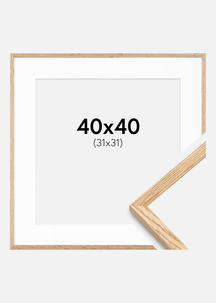Kehys Kapea Tammi 40x40 cm - Passepartout Valkoinen 32x32 cm