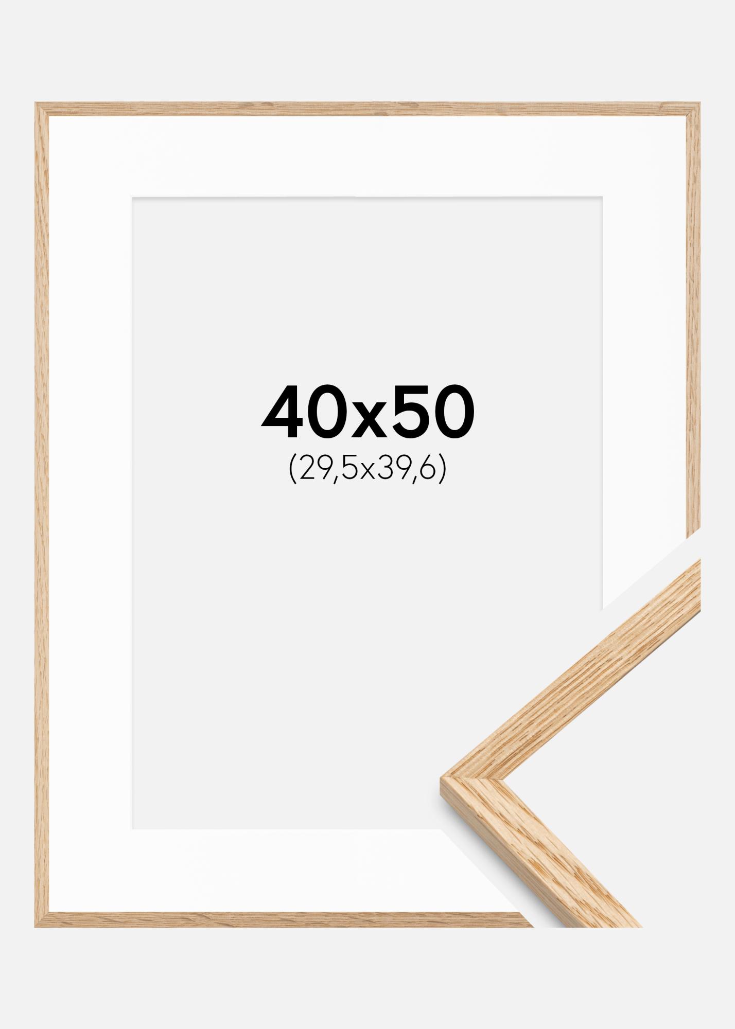 Kehys Kapea Tammi 40x50 cm - Passepartout Valkoinen 12x16 tuumaa