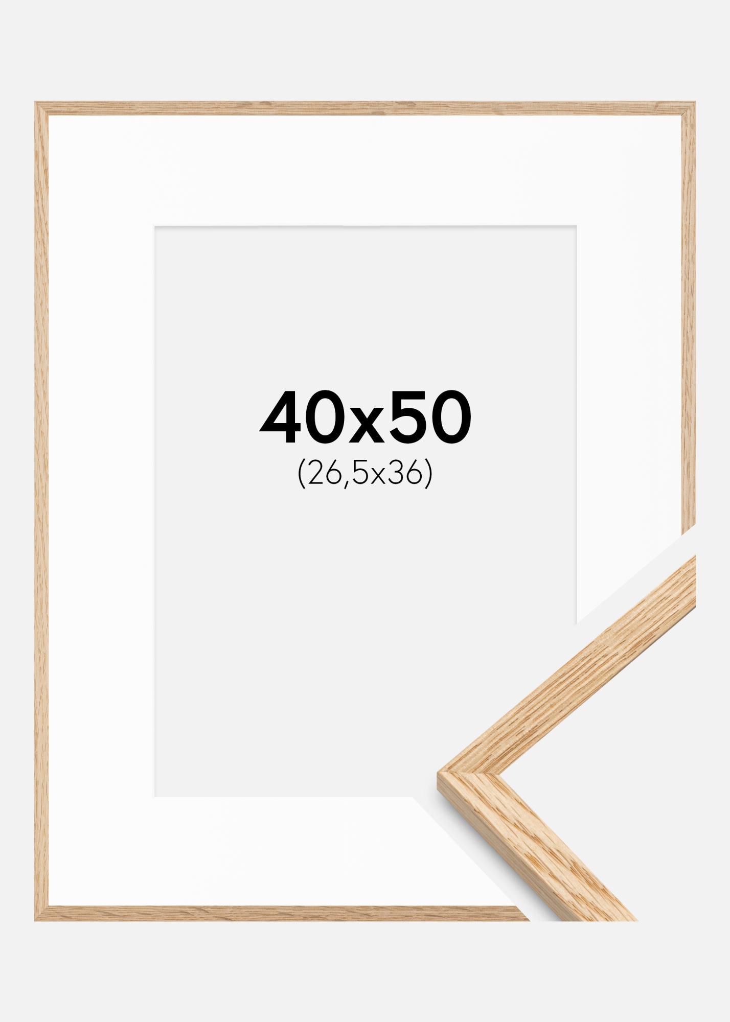 Kehys Kapea Tammi 40x50 cm - Passepartout Valkoinen 27,5x37 cm