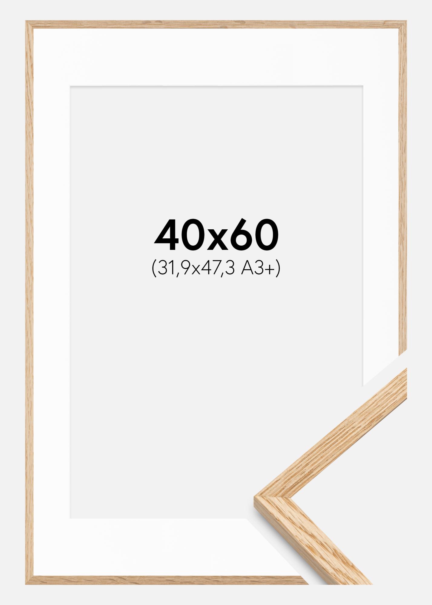 Kehys Kapea Tammi 40x60 cm - Passepartout Valkoinen 32,9x48,3 cm (A3+)
