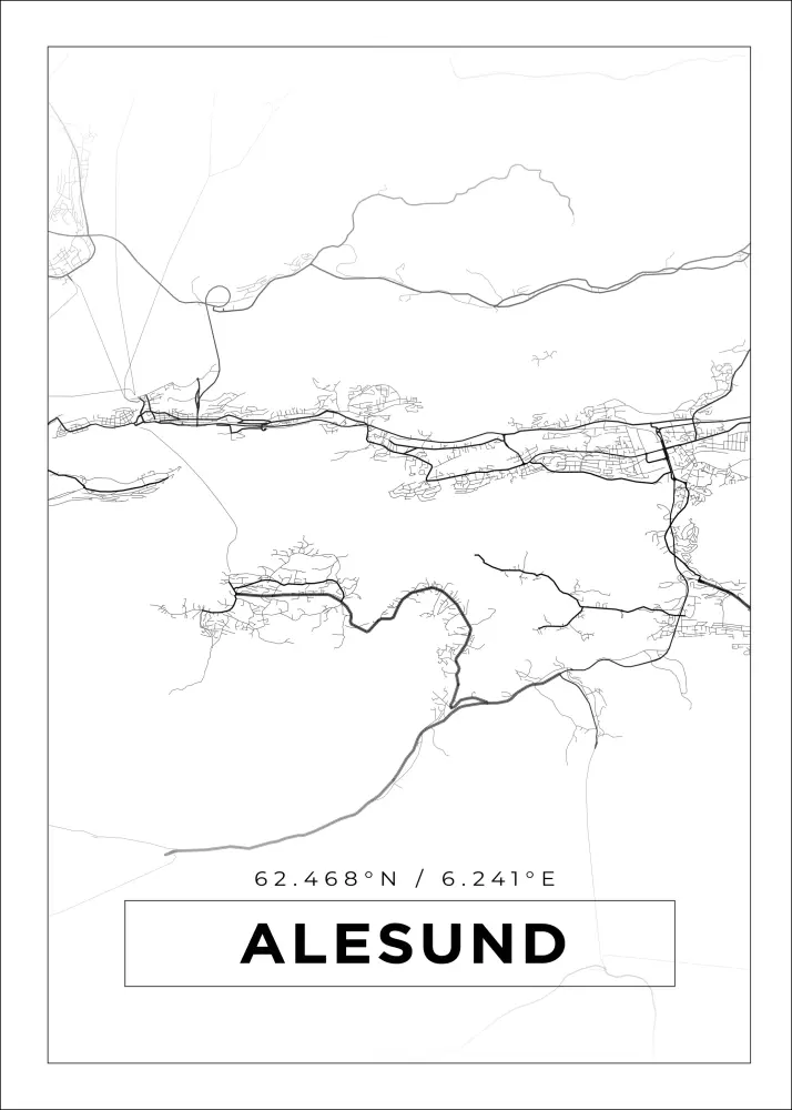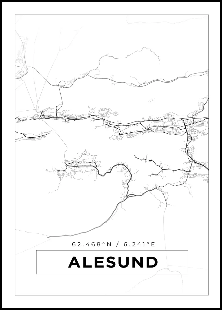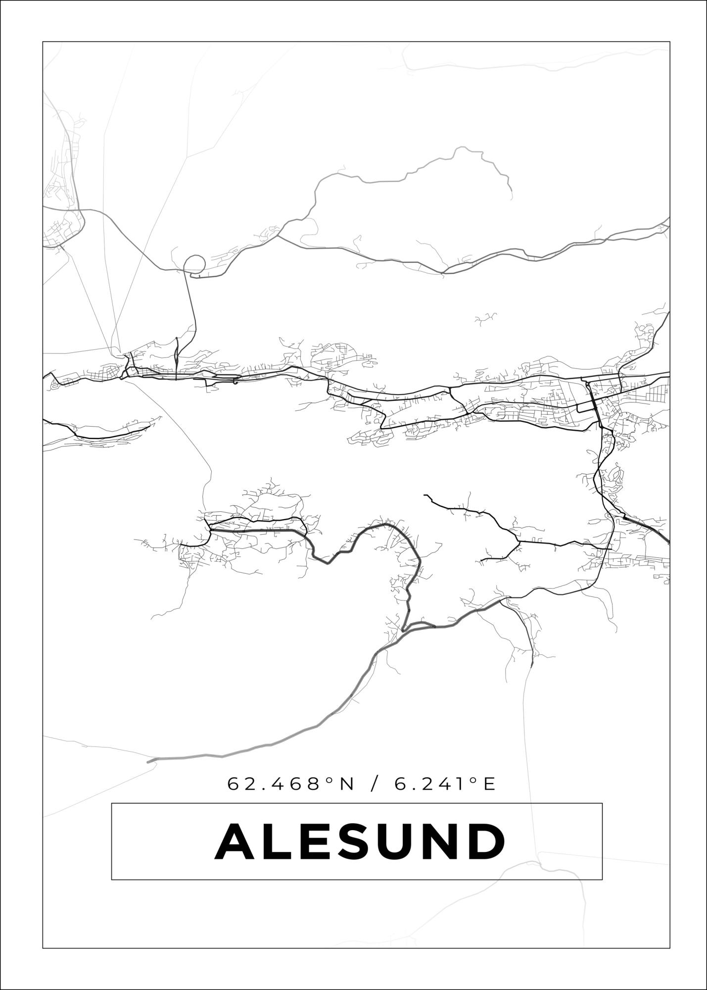 Kartta - Alesund - Valkoinen Juliste (21x29.7 cm (A4))