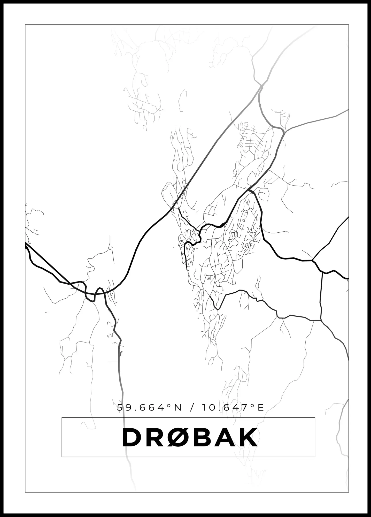 Kartta - Drøbak - Valkoinen Juliste (21x29.7 cm (A4))