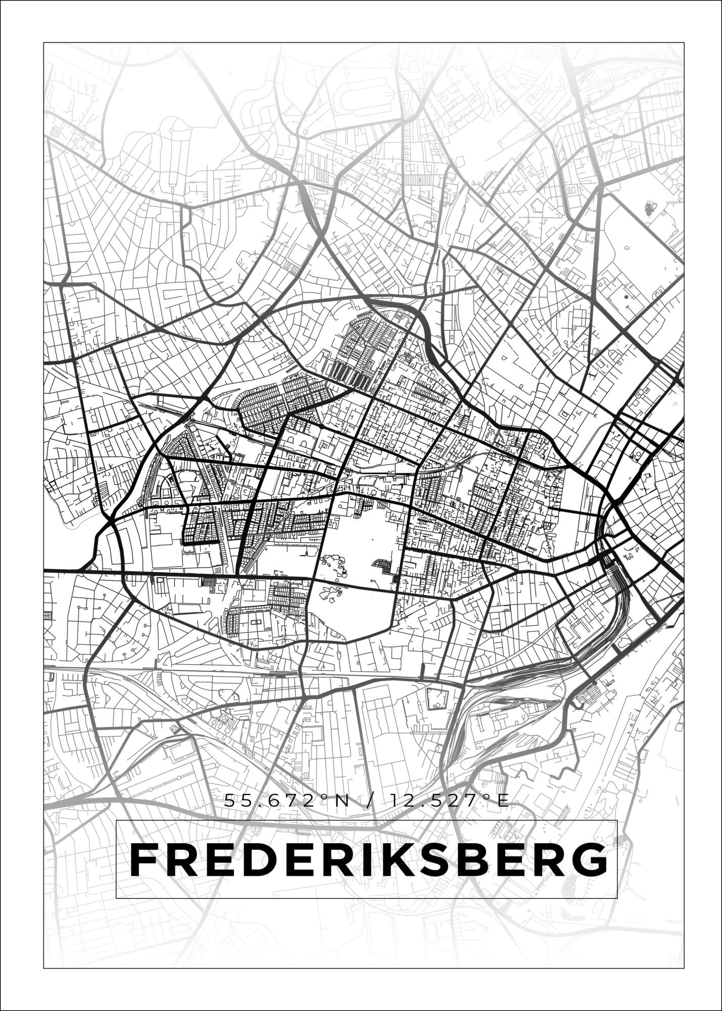 Kartta - Frederiksberg - Valkoinen Juliste (21x29.7 cm (A4))