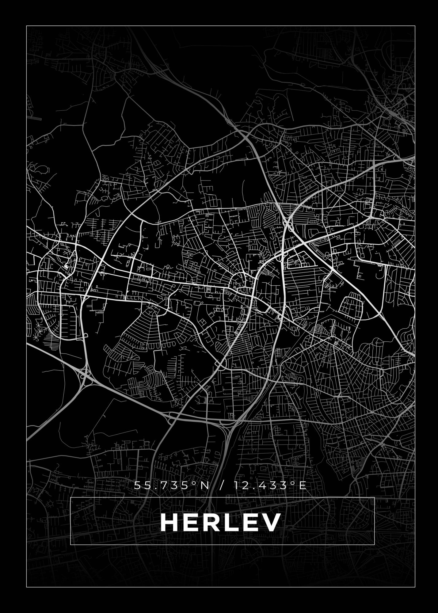 Kartta - Herlev - Musta Juliste (21x29.7 cm (A4))