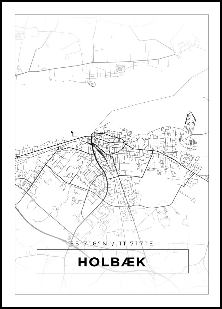 Kartta - Holbæk - Valkoinen Juliste (40x50 cm)