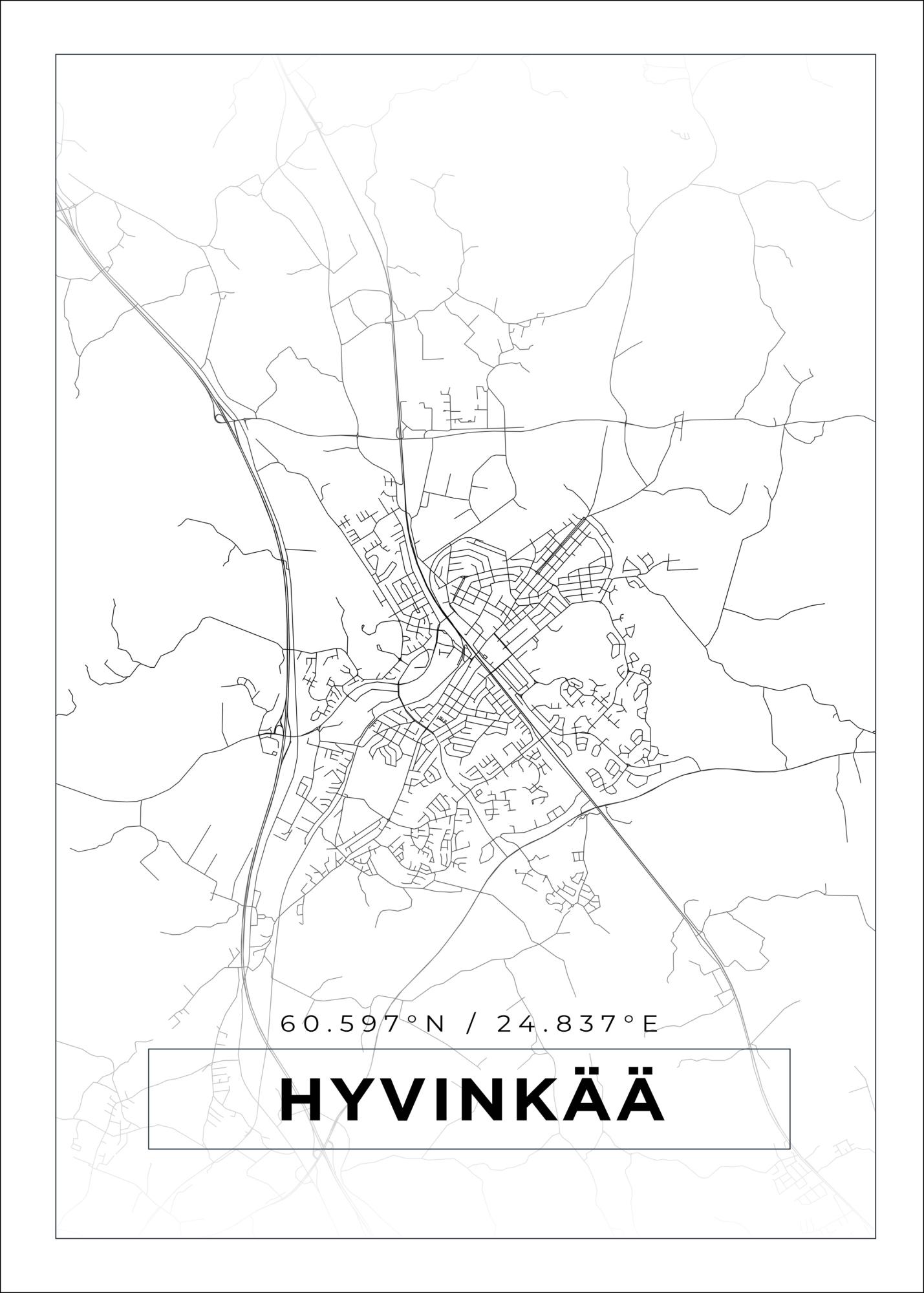Kartta - Hyvinkää - Valkoinen Juliste (21x29.7 cm (A4))