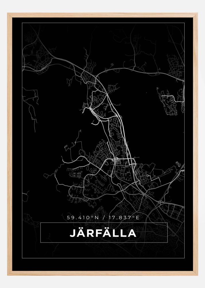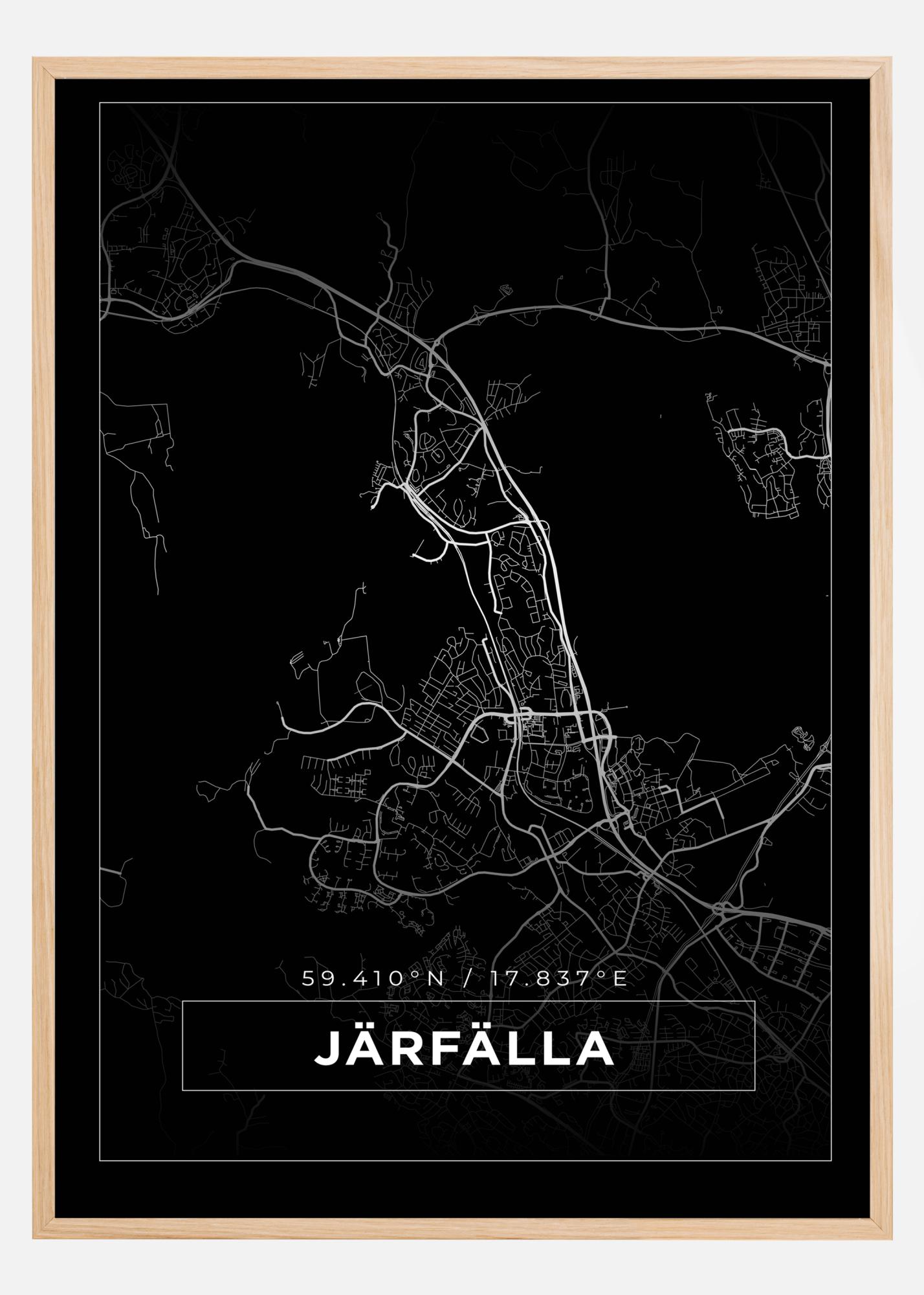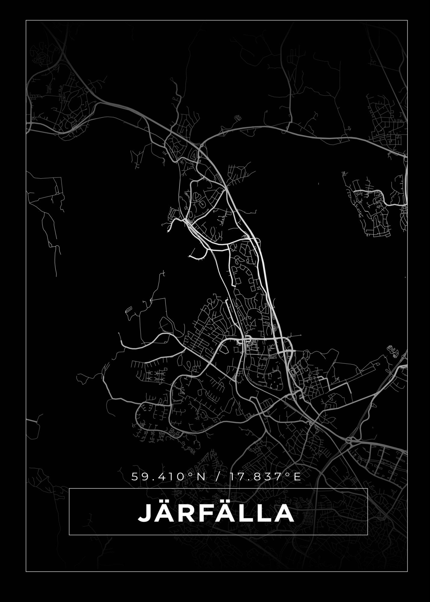 Kartta - Järfälla - Musta Juliste (50x70 cm)