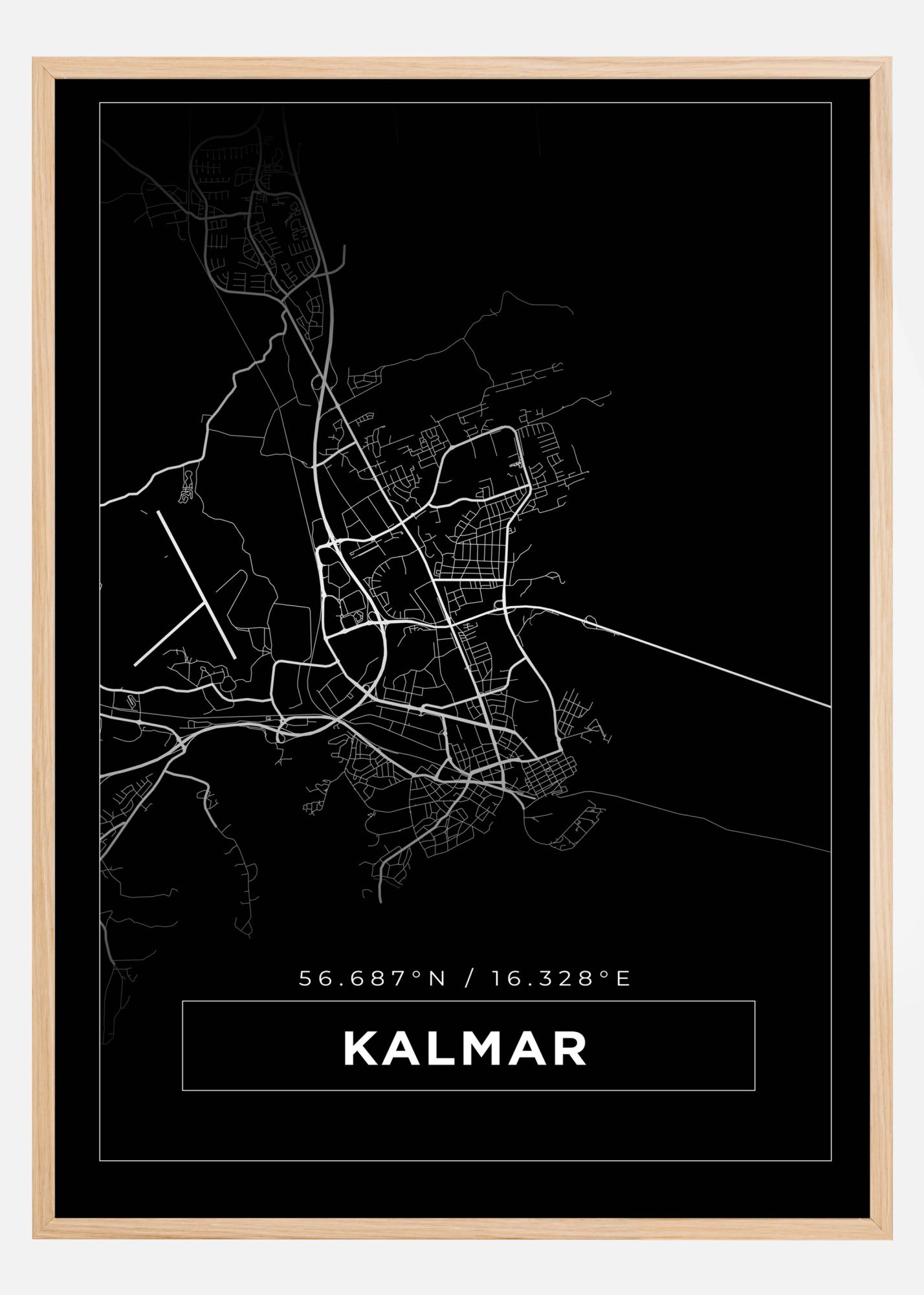 Kartta - Kalmar - Musta Juliste (40x50 cm)