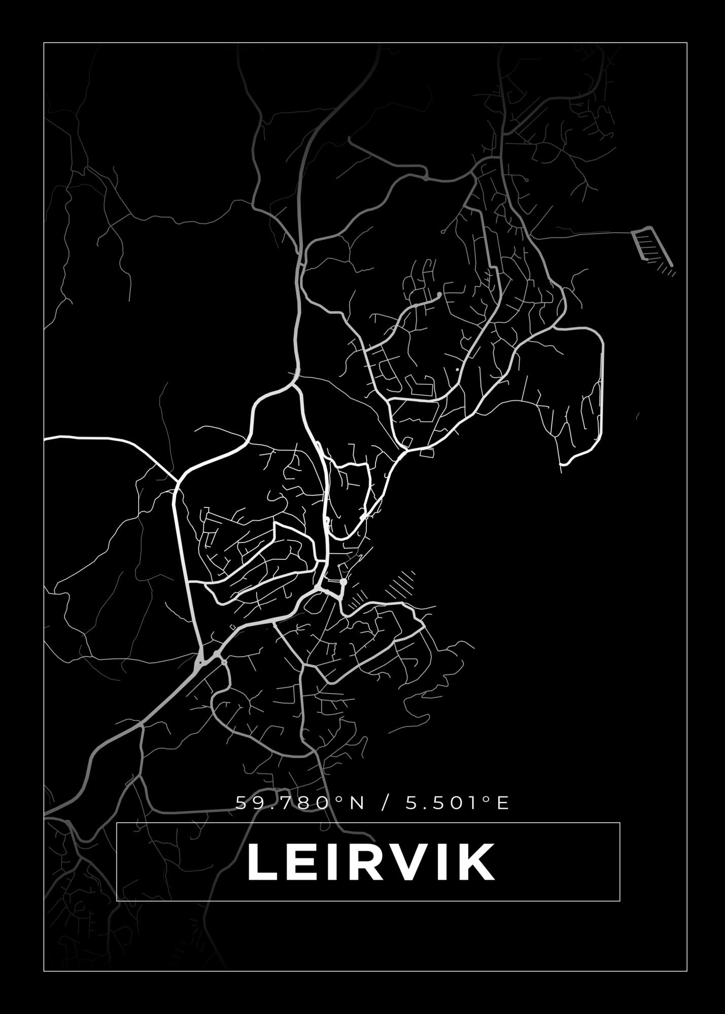 Kartta - Leirvik - Musta Juliste (40x50 cm)
