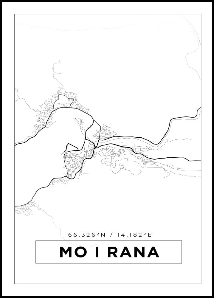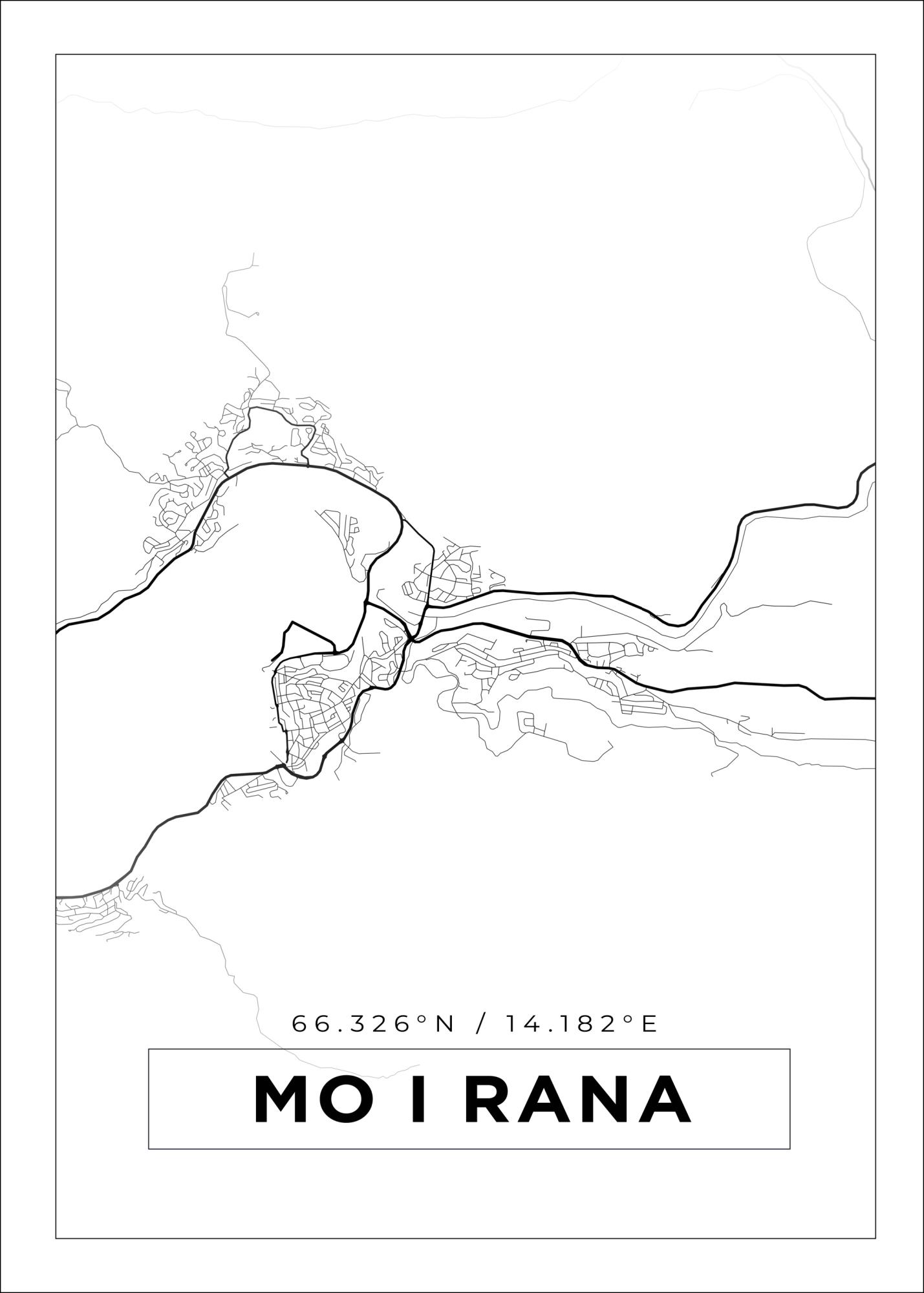 Kartta - Mo I Rana - Valkoinen Juliste (30x40 cm)
