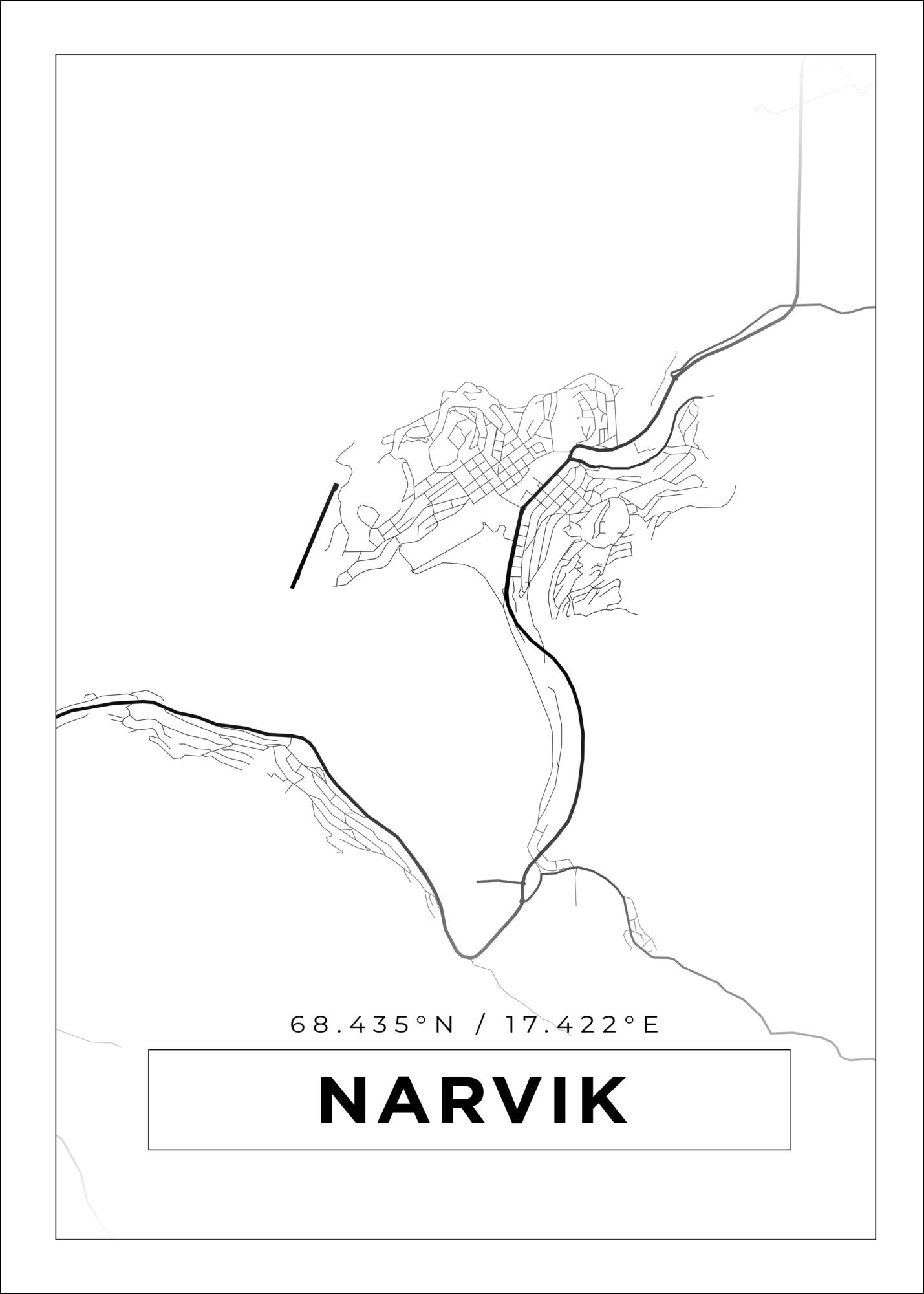 Kartta - Narvik - Valkoinen Juliste (70x100 cm)