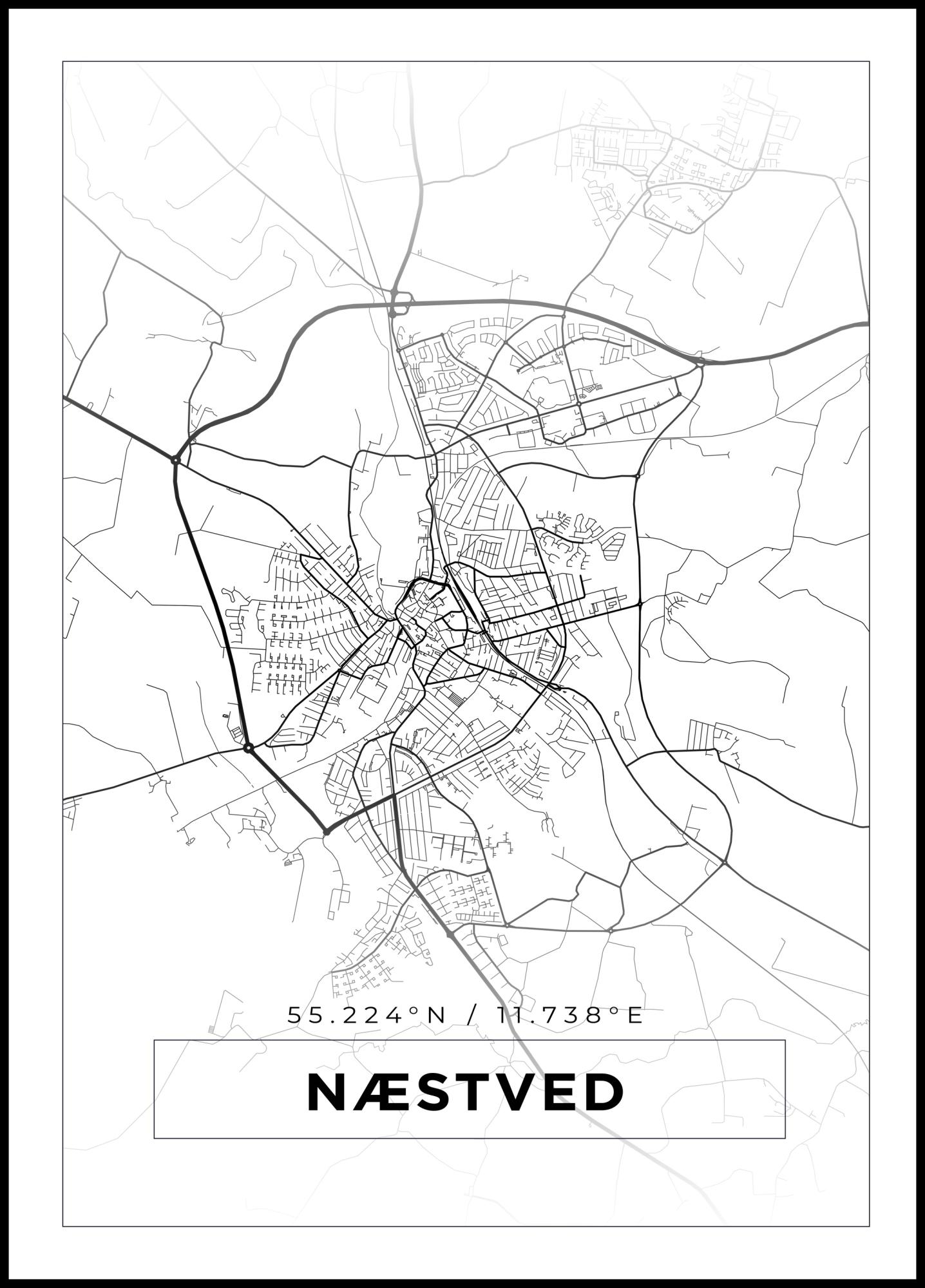 Kartta - Næstved - Valkoinen Juliste (21x29.7 cm (A4))