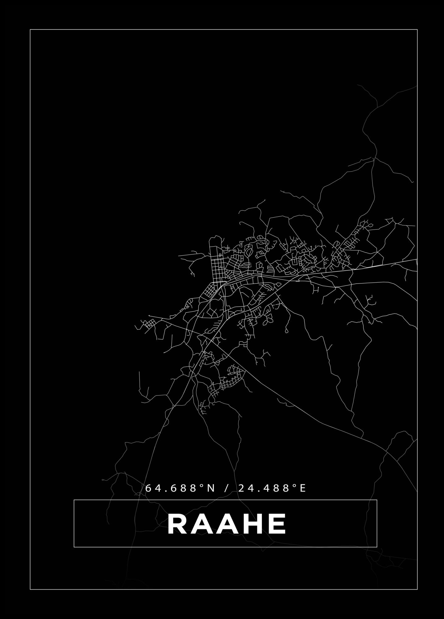 Kartta - Raahe - Musta Juliste (21x29.7 cm (A4))